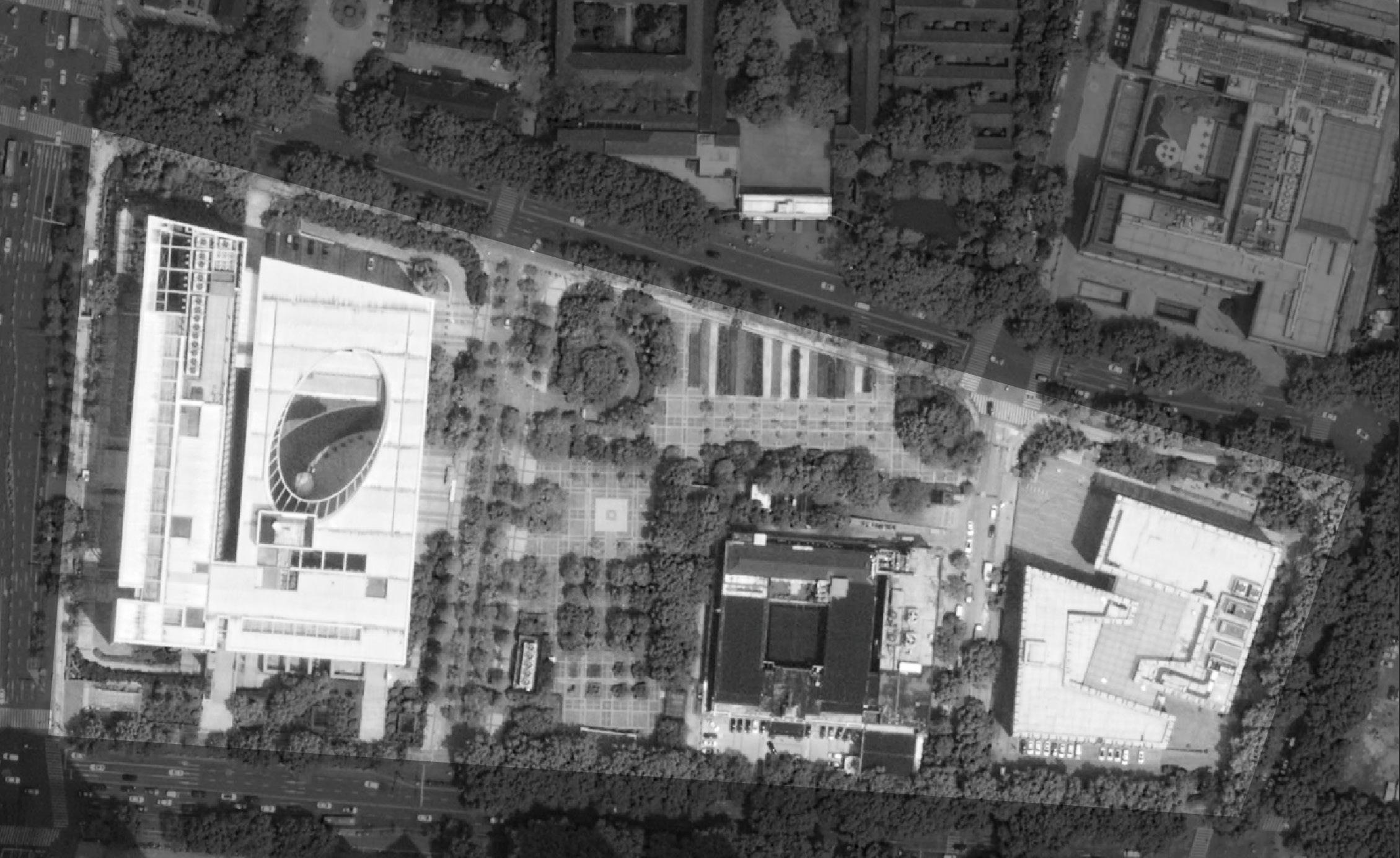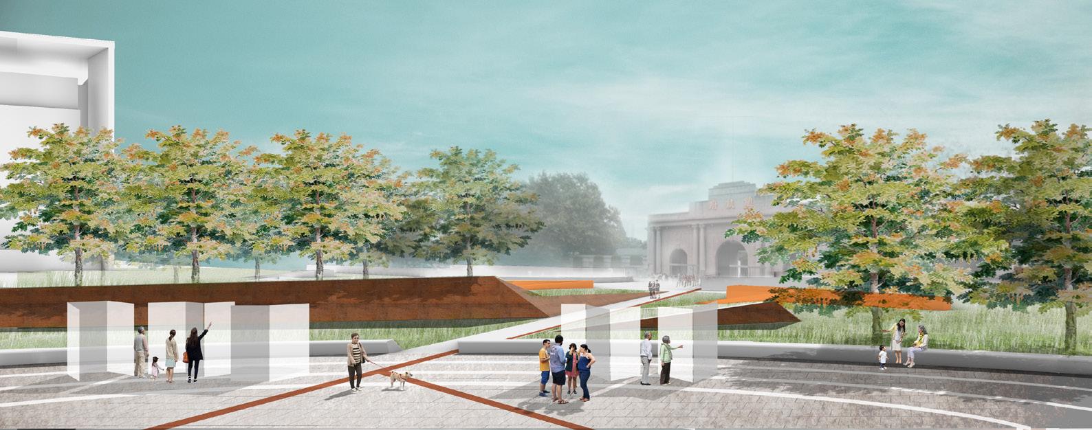 The urban road passing underneath realizes the diversion of people and vehicles. The circular square echoes the curved enclosure of the Presidential Palace.