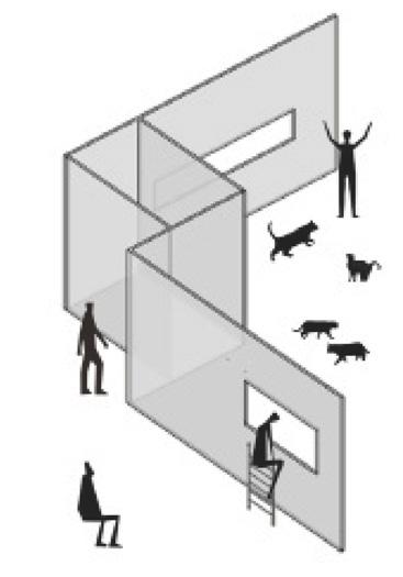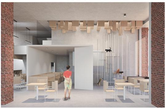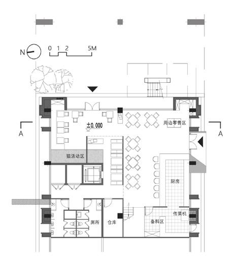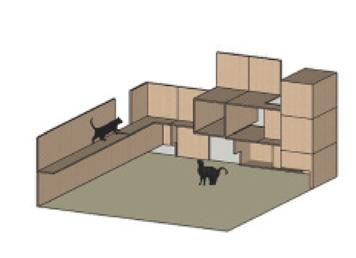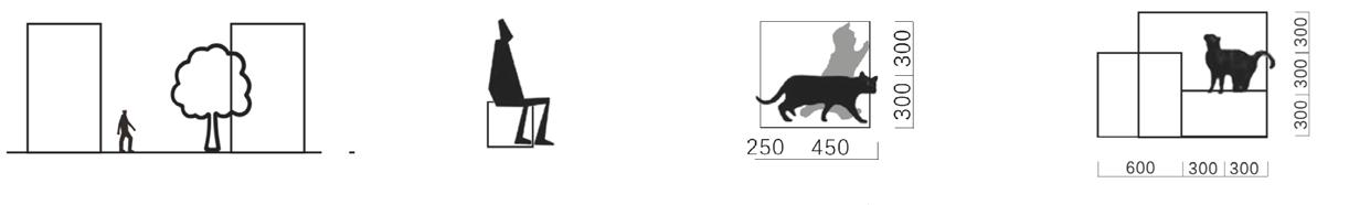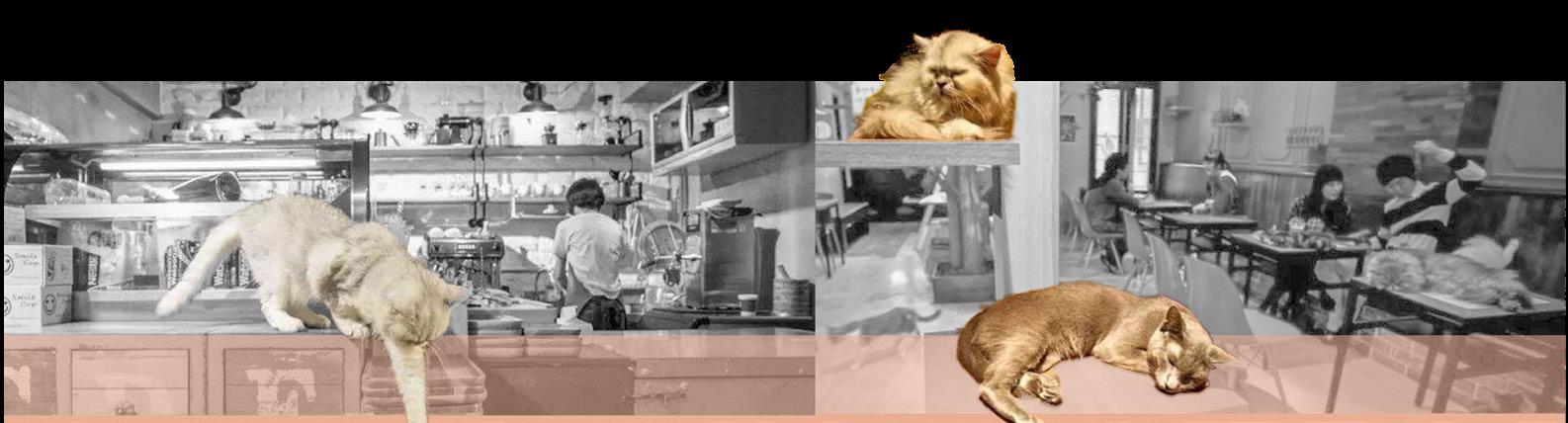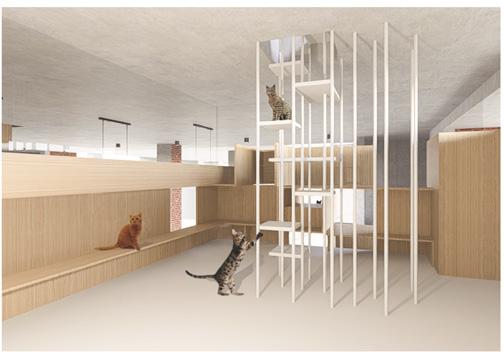 In "Catblock Cafe", people are the objects and cats are the subjects.Through the combination of separation and intersection of human and cat activity area, the equal relationship between human and pet is explored.