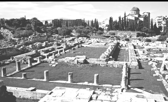 The ancient Agora of Athens is the best-known example of an ancient Greek agora, whose initial use was for a commercial, assembly, or residential gathering place.
