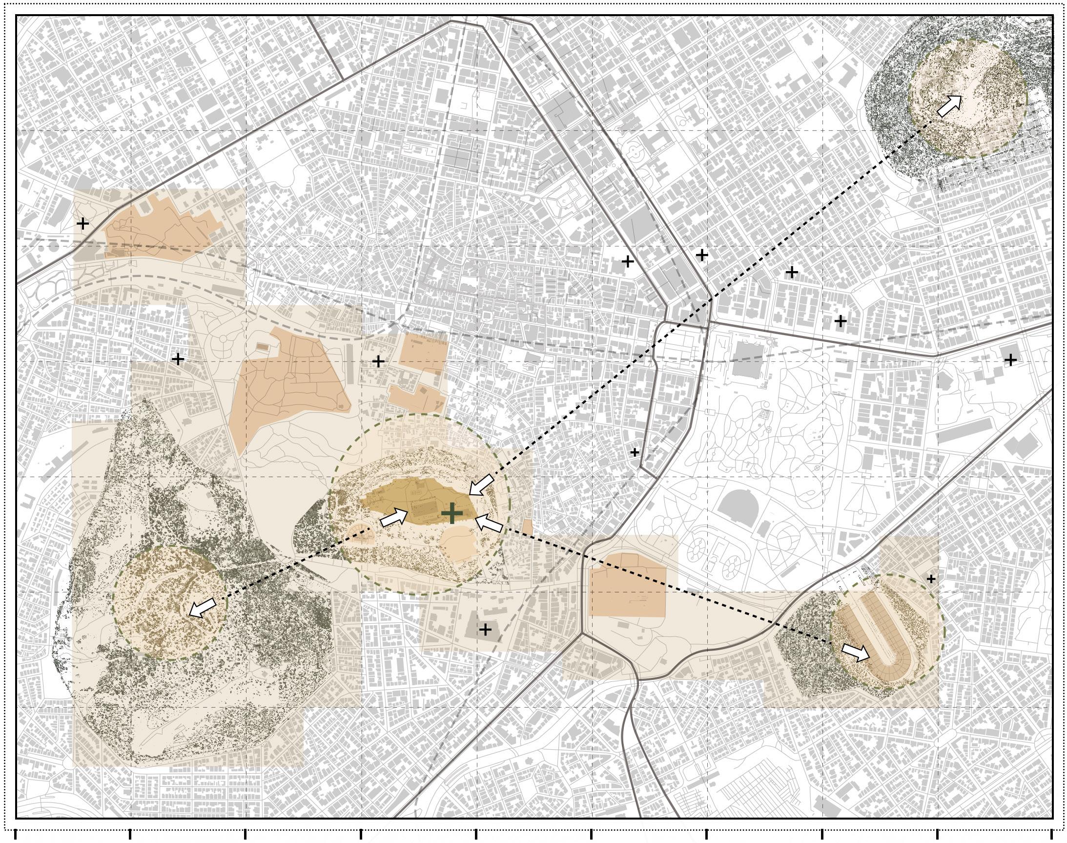 Mediterranean pine Gravel pavement Athens Schist Surface A B C D E F Ruins of stones and grass Athens marble olive tree 2 3 4 5 6 7 8 9 9 10 11 12 13 A B C D 14 14 14 14 14 A D E F 0 5 15 30m