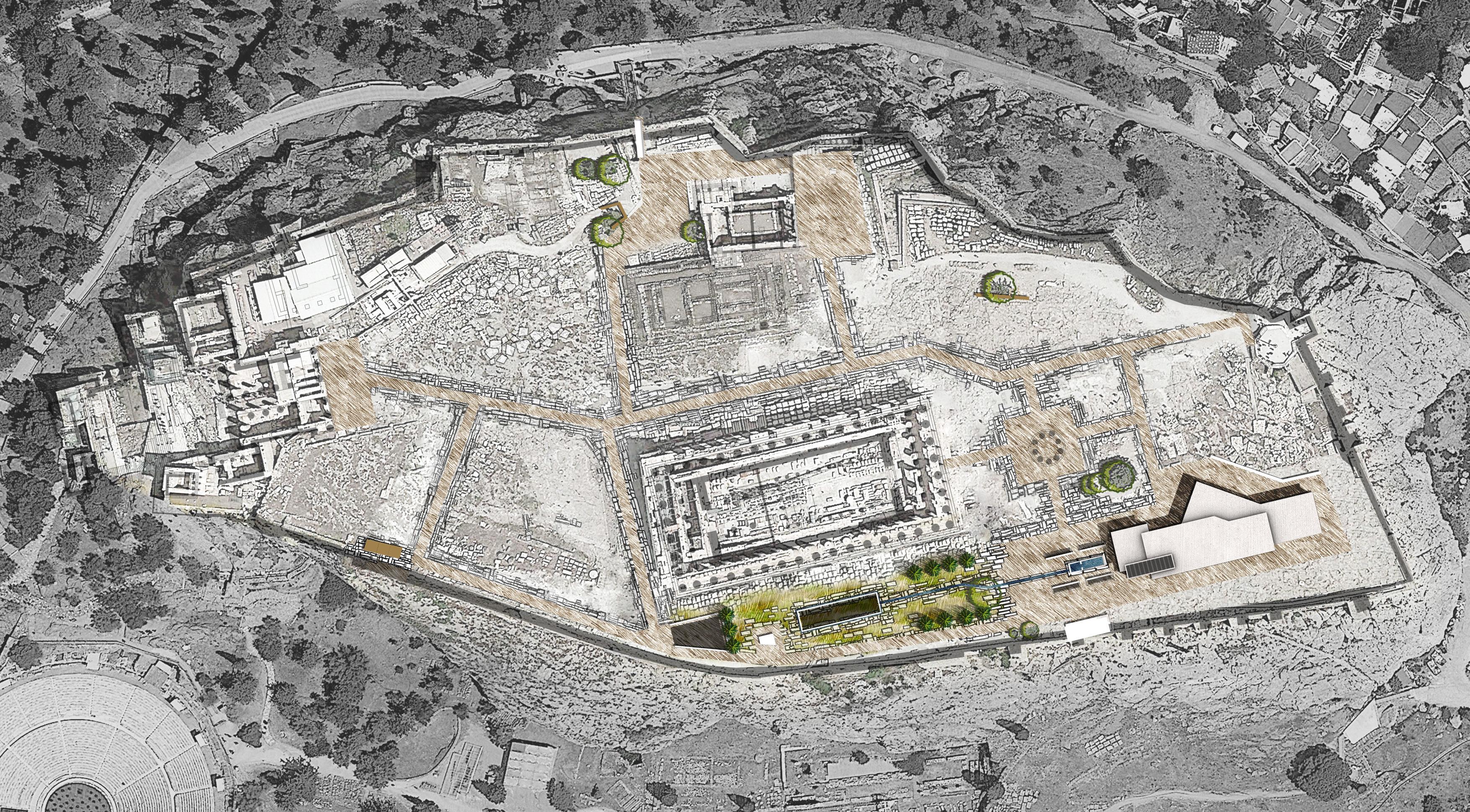 The Acropolis has a clear circulation, with three ancient buildings and the open space forming a strong sense of spatial sequence and ritual. The project adds a new building mass on the site of the old Acropolis Museum in the southeast corner of the site.