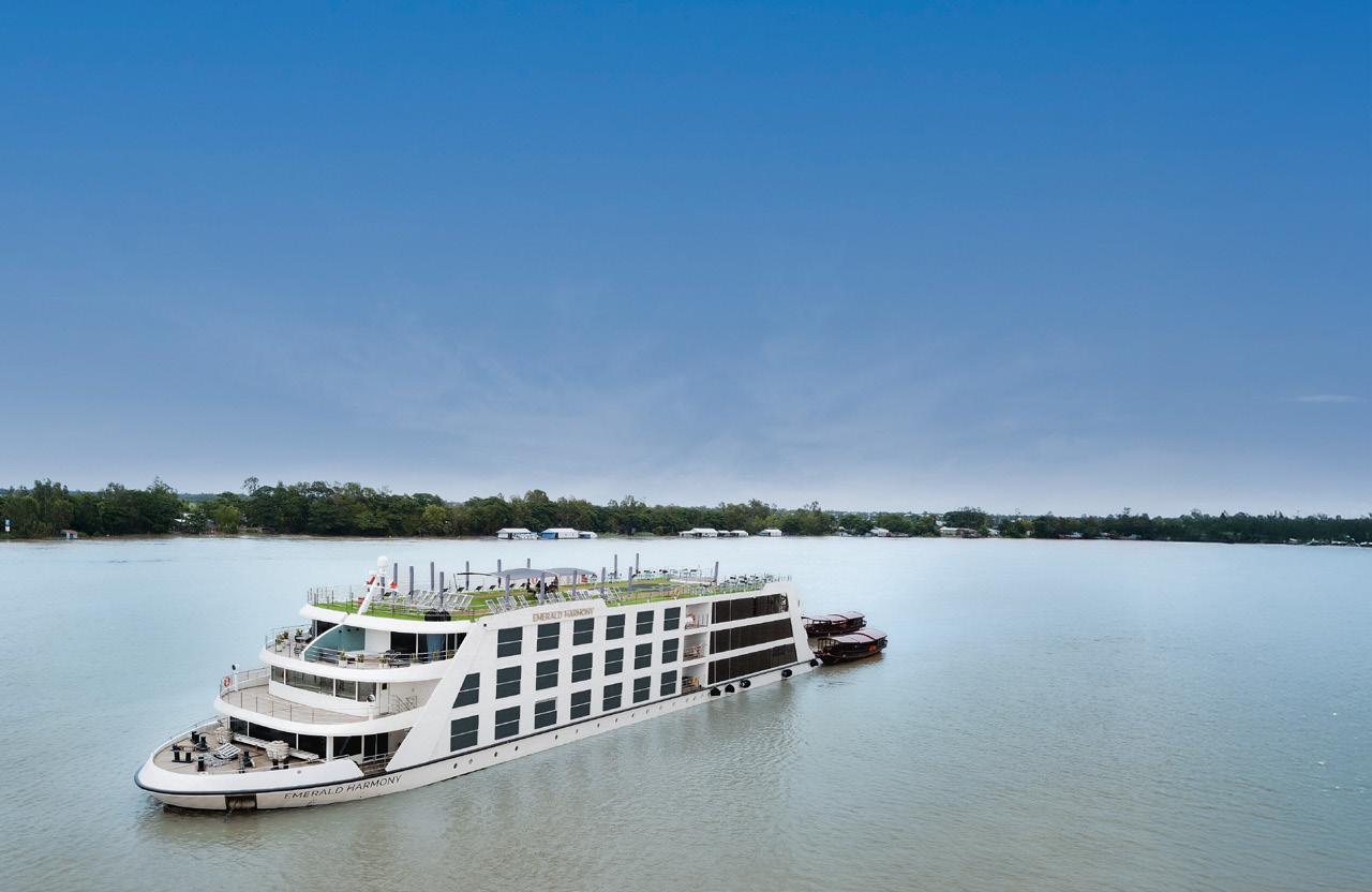 Thoughtfully designed for the Mekong, Emerald Harmony blends modern sophistication with Southeast Asian charm, offering spacious suites, contemporary lounges, and worldclass dining. With just 84 guests and a dedicated 40-member crew, this intimate setting ensures personalized service and a relaxed, luxurious experience. Unwind on the Sun Deck, cool off in the serene pool, or enjoy our state-of-the-art amenities as you take in the ever-changing scenery of Vietnam and Cambodia.