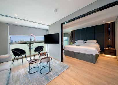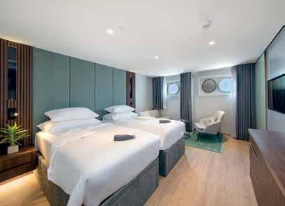 A private indoor balcony design and drop–down window are perfect for enjoying the ever–changing views. Reaching 25m² (269ft2), relax and unwind in your opulent en–suite bathroom, complete with Bodia toiletries, and sleep soundly in your queen–size or twin hotel–style bed.