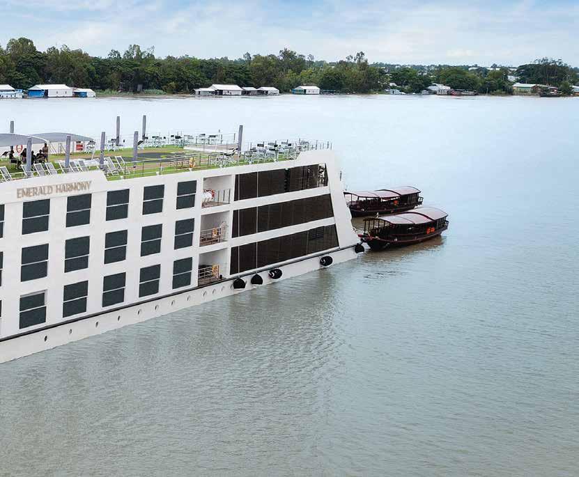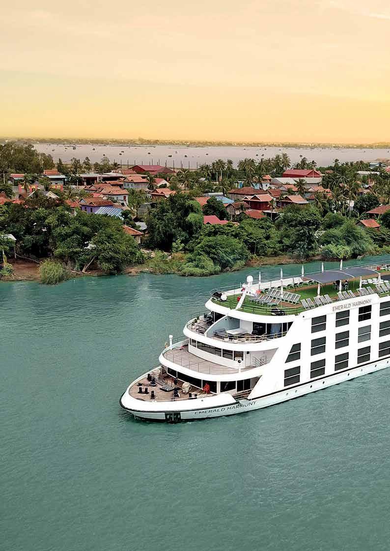Featuring unique innovations and contemporary designs, Emerald Cruises redefines luxury river cruising. Our stateof-the-art Star-Ship, Emerald Harmony, comes masterfully designed to cruise the Mekong River and access places that most vessels aren’t able to — one of the few ships that sails into central Ho Chi Minh City. With a maximum of 84 guests on board, enjoy a more intimate cruising lifestyle and