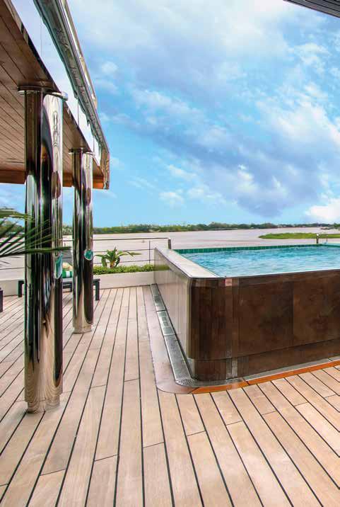 Our sun-drenched Pool Deck is tailor-made for relaxation. Comfy sun loungers and sofas encourage repose, while the Pool Bar serves a wide range of beverages throughout the day. Take a refreshing dip in the generously sized salt water pool, which is wellpositioned for swim-up views of the ever-changing riverscapes.