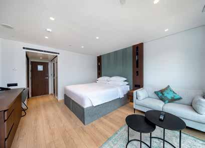At 42m² (452ft2), this truly spectacular suite boasts separate bedroom and lounge areas, a luxurious en–suite bathroom and a queen–size or twin–style bed, plus a private terrace, with an additional space of 30m2 (322ft2) complete with a hot tub.