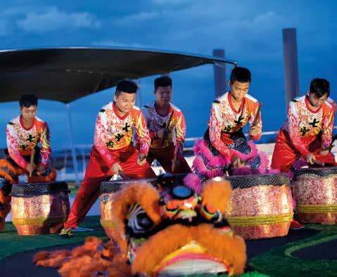 Elevated above the Pool Deck, the stylish Sun Deck is the perfect spot for panoramic views and leisurely pursuits. Out on deck, enjoy the walking track, putting green and giant noughts and crosses game, or join early morning exercises. Memorable outdoor entertainment extends to vibrant Lion Dance performances, or simply relax on the provided deck chairs, taking in the river breezes.