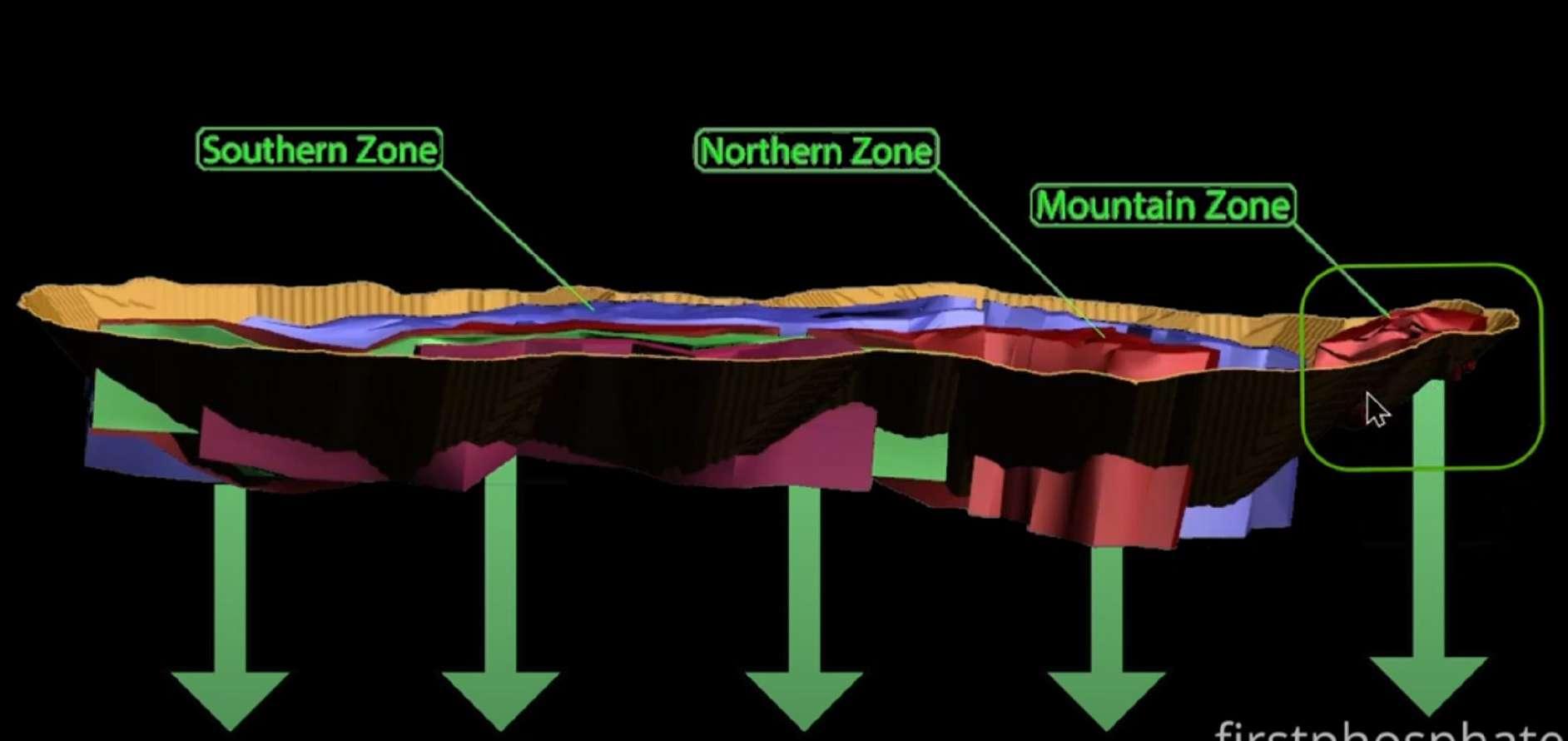 ● 3 zones comprise inferred resources of 214 million tonnes of high purity igneous phosphate grading at 6.0%