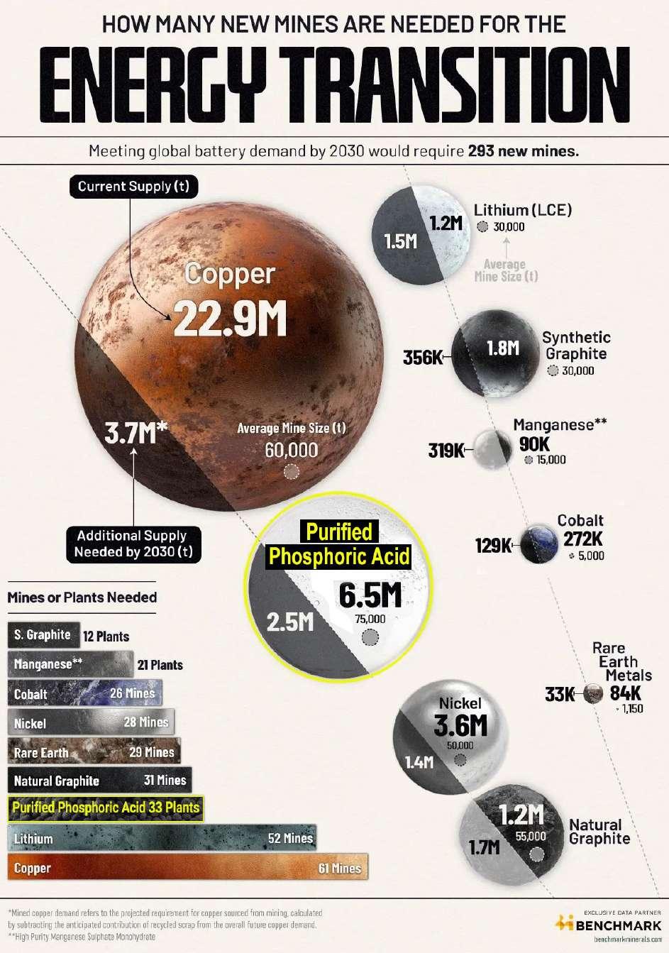 33 new purified phosphoric acid plants required by 2030 to meet demands from the energy transition for LFP Battery. Today there are only 5 in the Western World developed over 60 years dedicated to traditional use (food and industry) not LFP.