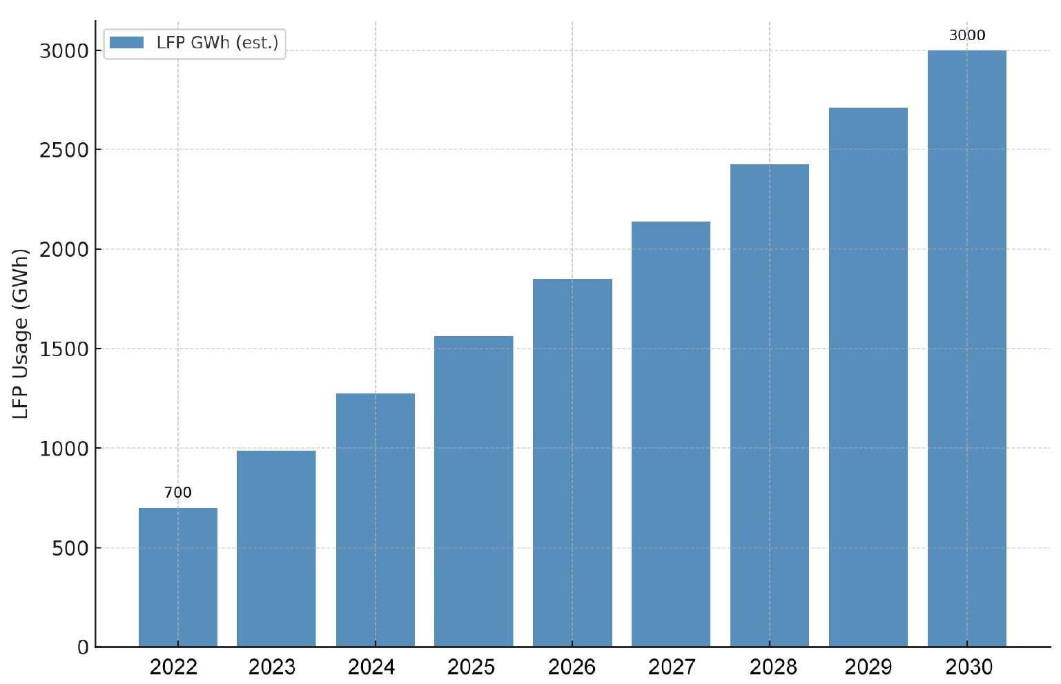 Projected Global LFP Battery Usage, 2022–2030 (GWh)