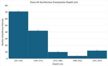 • RJE Zone: 17 drillholes, 3,816 m, 76% intercepted Au up to 51.26 g/t over 0.8 m; 300 m strike drilled, 1.7 km+ strike open