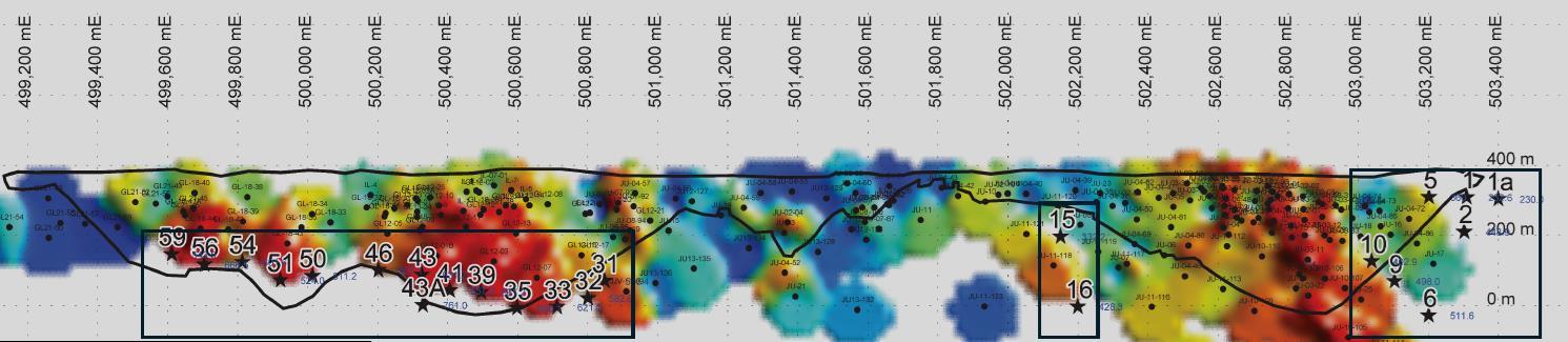 Infill & Expand – Planned 23 holes for a total of 13,000 meters of drilling