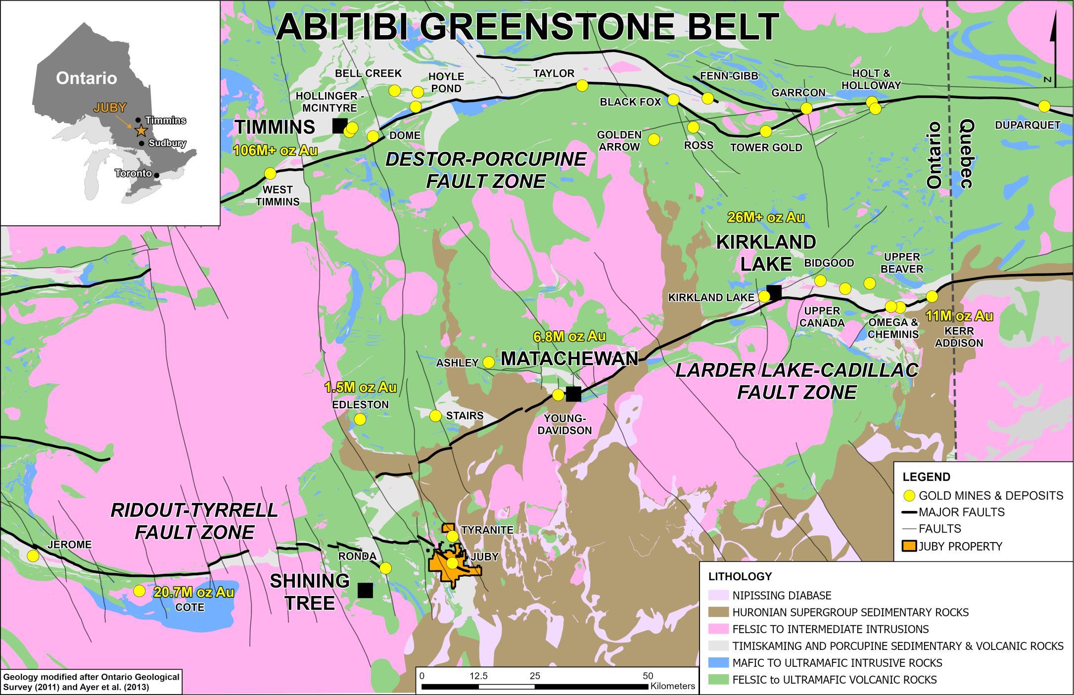 Located amongst Canada’s Largest Gold Mines in Prolific Abitibi Greenstone Belt that has produced >200Moz