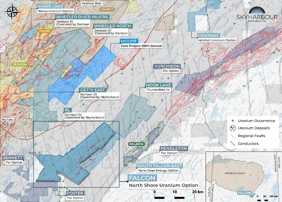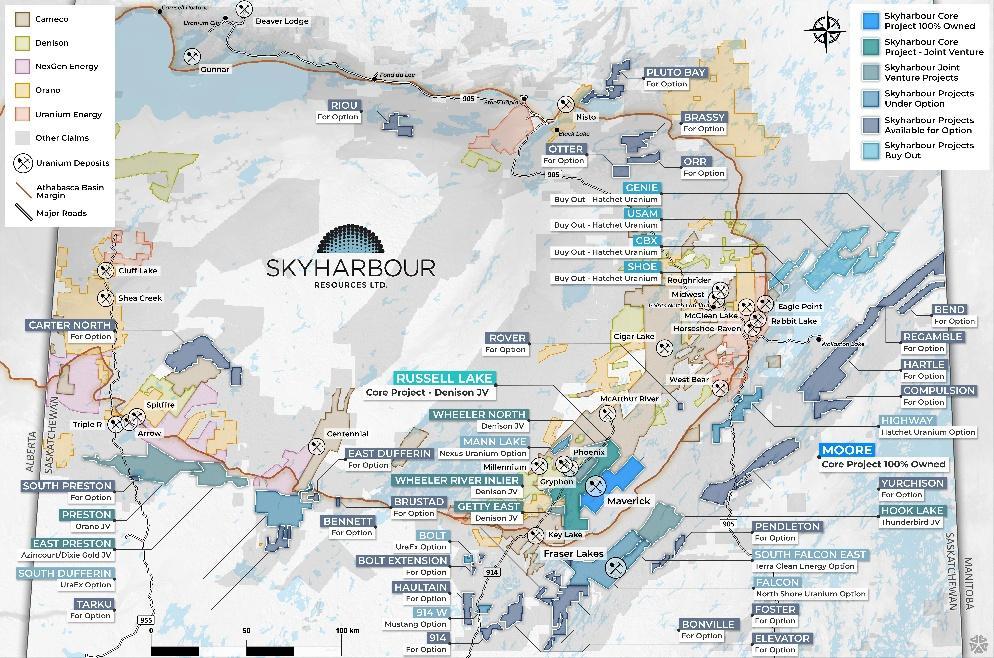 • Nexus Uranium to contribute cash and exploration expenditures consideration totaling CAD $4,850,000 over a multi-year period ($850,000 will be in cash payments to Skyharbour as well as $4,000,000 in exploration expenditures) as well as issue a total of CAD $1,750,000 worth of shares to Skyharbour