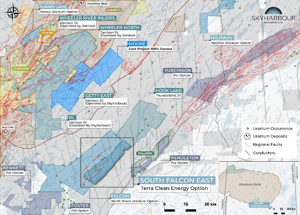 • Definitive Agreement signed in October 2021 with Nexus Uranium Corp. (previously Basin Uranium) to earn-in 75% of Skyharbour’s Mann Lake project