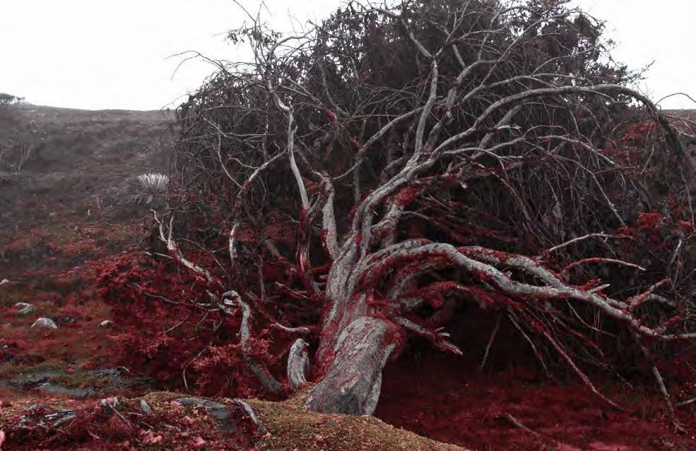 Its branches skeletal and stark, the tree, though seemingly forsaken by time, speaks of resilience and transformation. Its gnarled limbs are reborn through the embrace of these fiery leaves, a testament to nature’s relentless cycle of life and death.