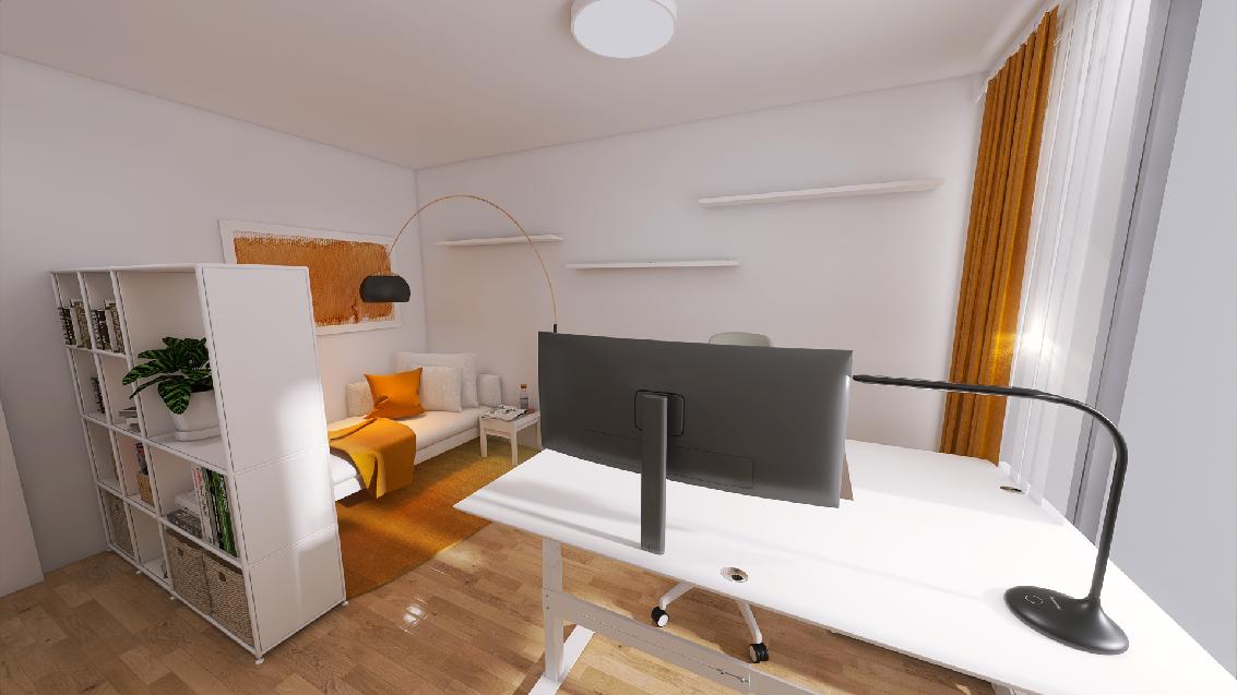 The client’s family moved to the new house quite recently so currently the room is being used as a storage. The main challenge of this room is to create two separate spaces and not to overlap with the corridor from the entrance door to the inner garden door.