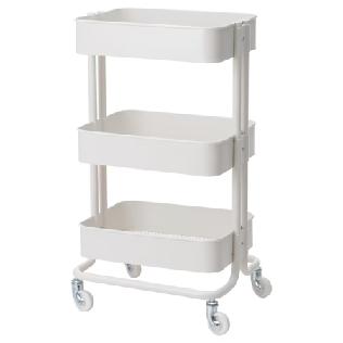 Create your own craft corner: Install the RÄCKA, curtain rod system from IKEA to the entrance door wall. You can cut it down to size as you see fit or to use for the 30 m long MÅLA paper roll. For the art supplies I’d recommend getting the RÅSKOG trolley. This way you create a space where new ideas can come alive without unnecessary clutter in the space. Thanks to the wheels, the trolley can be fast stored below the working table.