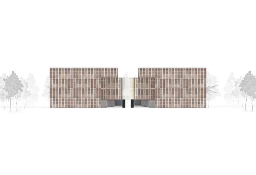 The architectural composition of The Intersection consists of two symmetrical wings of interlocking apartment blocks, reinforcing the project’s core values of community and reciprocity; both physically and metaphorically. The housing matrix offers three distinct unit types: two-bedroom apartments, one-bedroom apartments, and studio dwellings. Each unit is designed to promote a dynamic living experience, integrating a thoughtful spatial hierarchy that enhances the quality of life for its inhabitants.