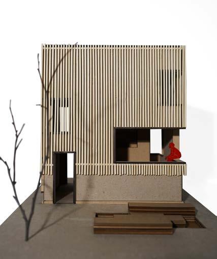 This site, often reserved for a garage, has been reimagined to meet the needs of future community members. The design utilizes split levels to maximize the limited space while maintaining visual privacy. A central infrastructural core runs vertically through the structure, efficiently housing utilities, storage, and vertical circulation to ensure functionality within a compact footprint.