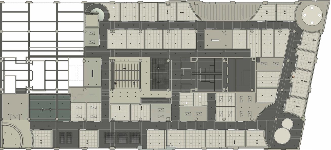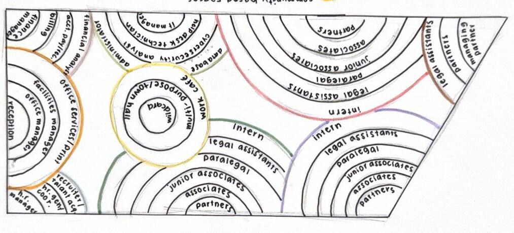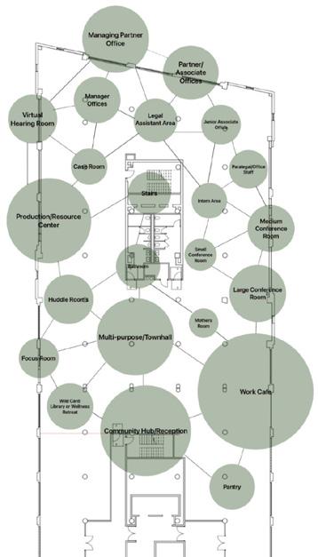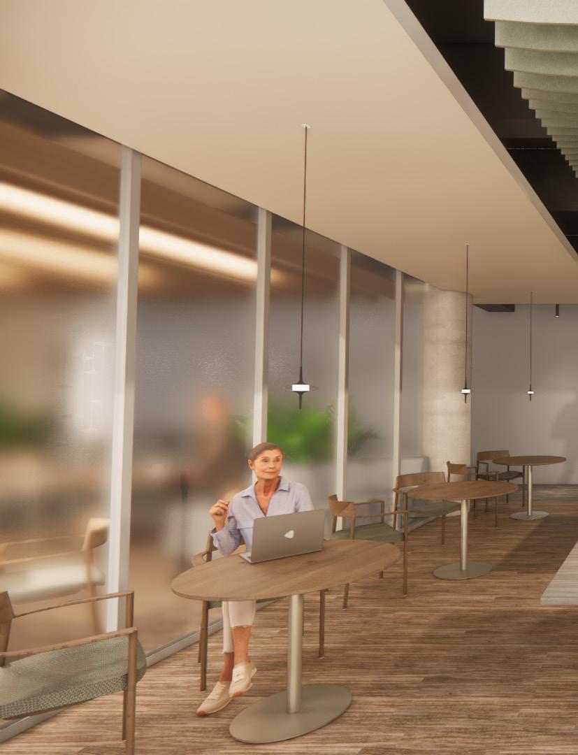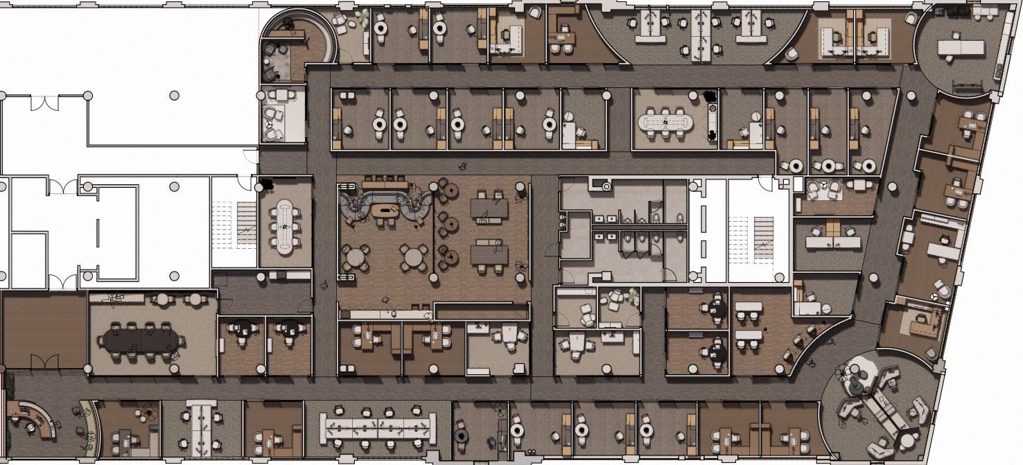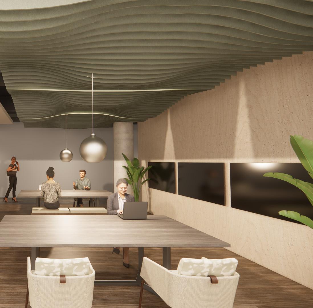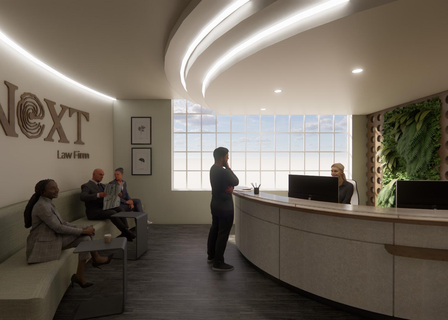 Next Law Firm is envisioned as a living ecosystem where legacy grows layer by layer, like rings in a tree. The design balances structure rooted in mentorship and tradition with fluidity that reflects adaptability and the evolving nature of legal practice. Thoughtful spatial layering supports this balance: open hubs and mentorship pods foster connection, while well ness retreats, focus rooms, and flexible meeting areas offer restoration and collaboration. Natural materials, daylight, and circadian lighting re inforce harmony between stability and change, creating a workplace that grows with its people and fosters meaningful connection and impact.