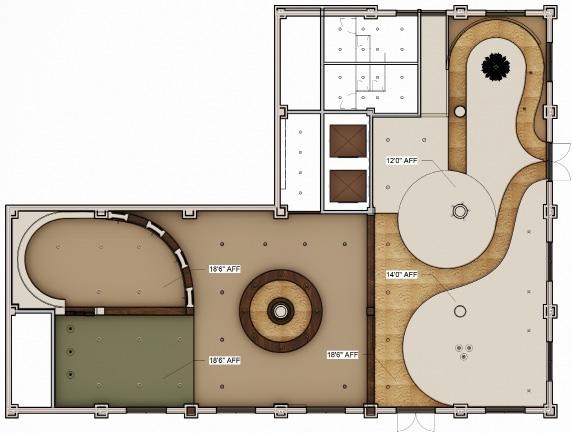 The Tree house is inspired by the spirit of the Nancy Jones Oak Tree, a place where memories were made, stories were shared, and people came together. Re-imagined as a welcoming space rooted in community, curiosity, and connection, it is meant to be a central gathering spot to explore, relax, and enjoy each other’s company. Much of my time on this project was spent in space planning, modeling, and aiding in renders to capture the nostalgia and wonder of a true tree house.