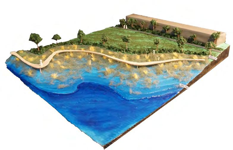The tidal marsh will improve water quality, protect against flooding, and promote animal habitats. The planting of the meadow allows for a different experience during high and low tide. It can also serve the purpose of being educational or a relaxing spot. A boardwalk meanders along the tidal marsh to allow visitors an immersive experience.