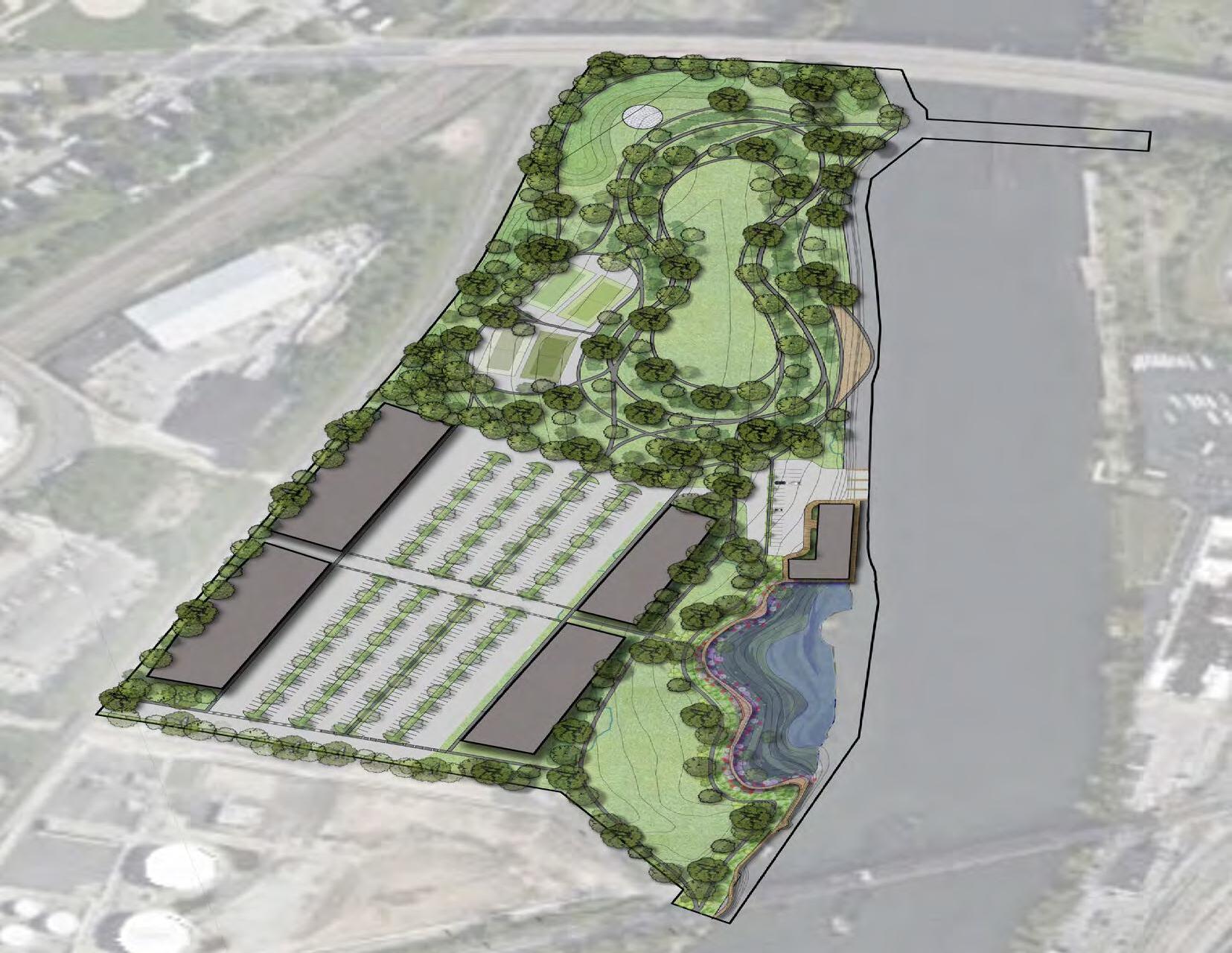 Bartram’s North is located along the shoreline of the Schuylkill River in Philadelphia, Pennsylvania. The area is 20 acres of undeveloped, former industrial land, and is adjacent to one of the most polluted rivers in the United States. Furthermore, the site is a missing connector to 120 miles of existing trails along the river. The main goals of the design is to revitalize the riverfront, improve the ecosystem, and create easy accessibility. The site plans include a tidal marsh, walking trails, sport courts, and a performance stage.