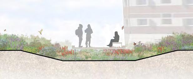 The site is located in the West Campus Commons at Pennsylvania State University. This area is underutilized, but has the potential to become a campus destination. The goal for this area is to create an herbaceous plant ecosystem that is engaging and educational. The meadow is categorized into three different meadow types: prairie, mesic, and rain meadow. A variety of colorful, native graminoids and perennial wildflowers are carefully selected for the meadow planting.