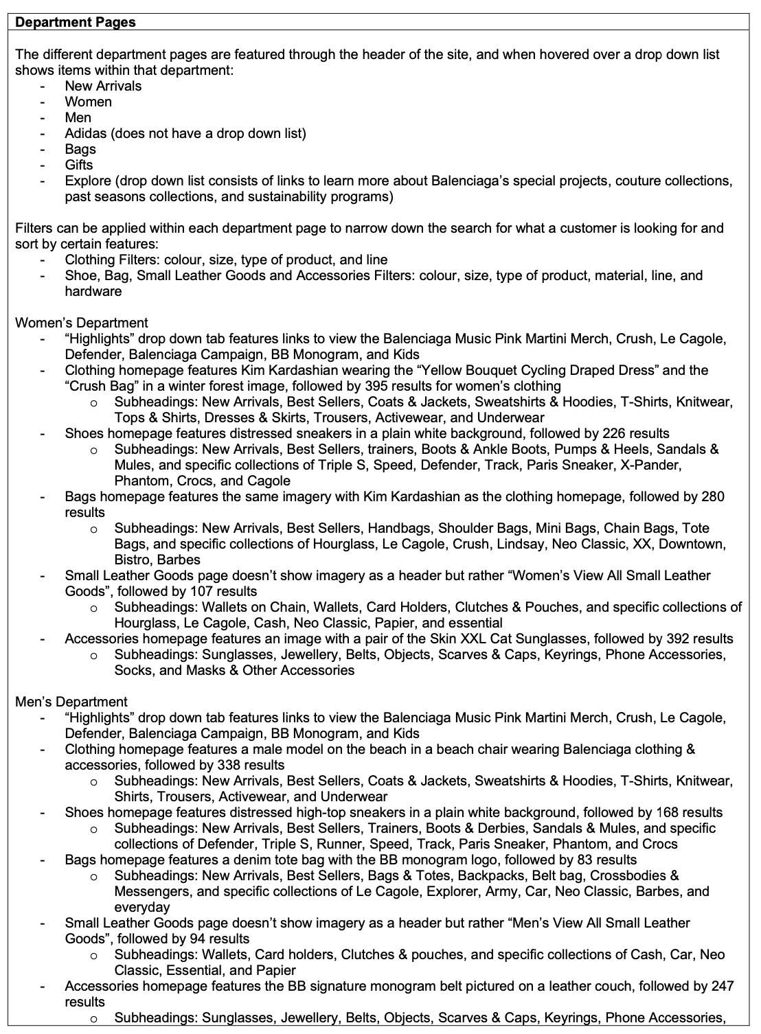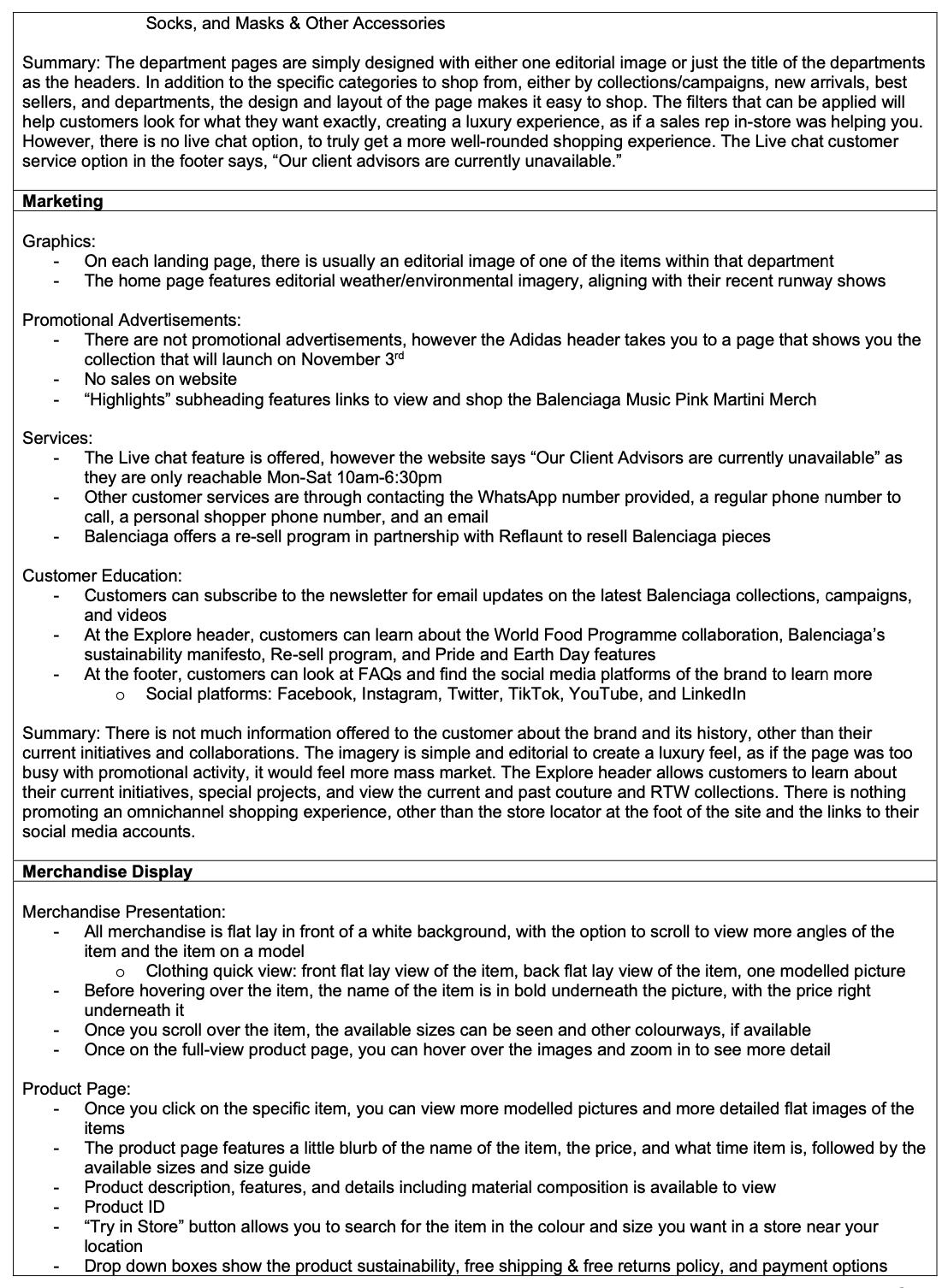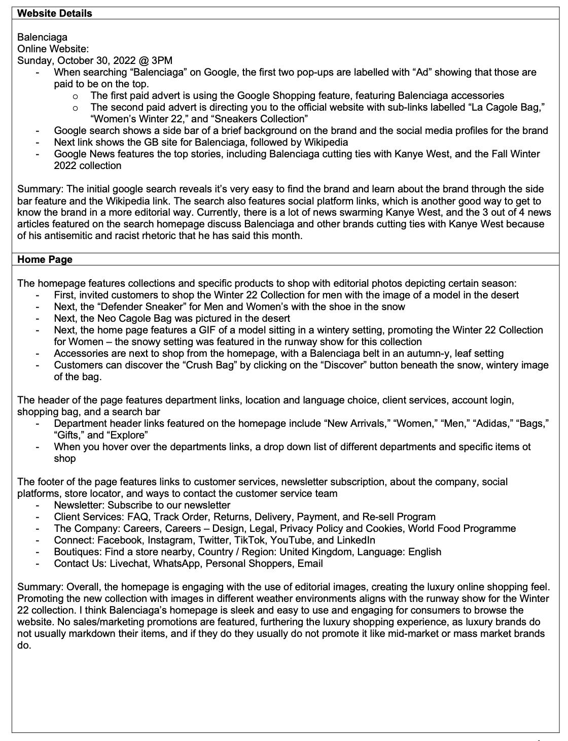 Where I struggled the most in this assessment was writing enough content of the strategy review section, as Balenciaga’s main approach to customer reactions is to make a public statement. After speaking with the unit leader, I decided to change the layout to create a more cohesive flow of this case study; breaking up the sections into innovation strategies and within those sections discuss the business problem and strategy review. This helped me visualize Balenciaga’s issues better and understand where there was a gap in my research that I could fill with primary research.