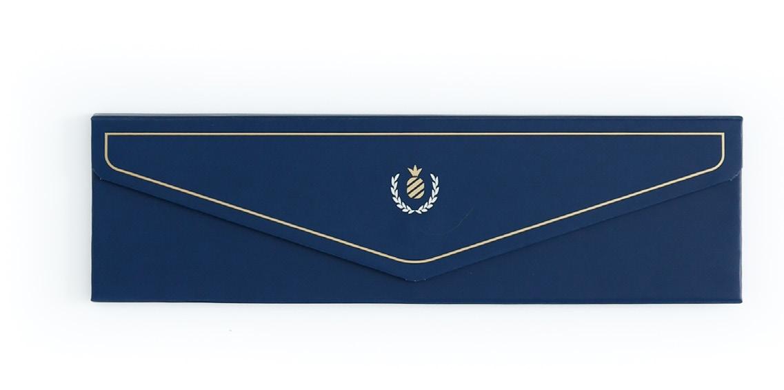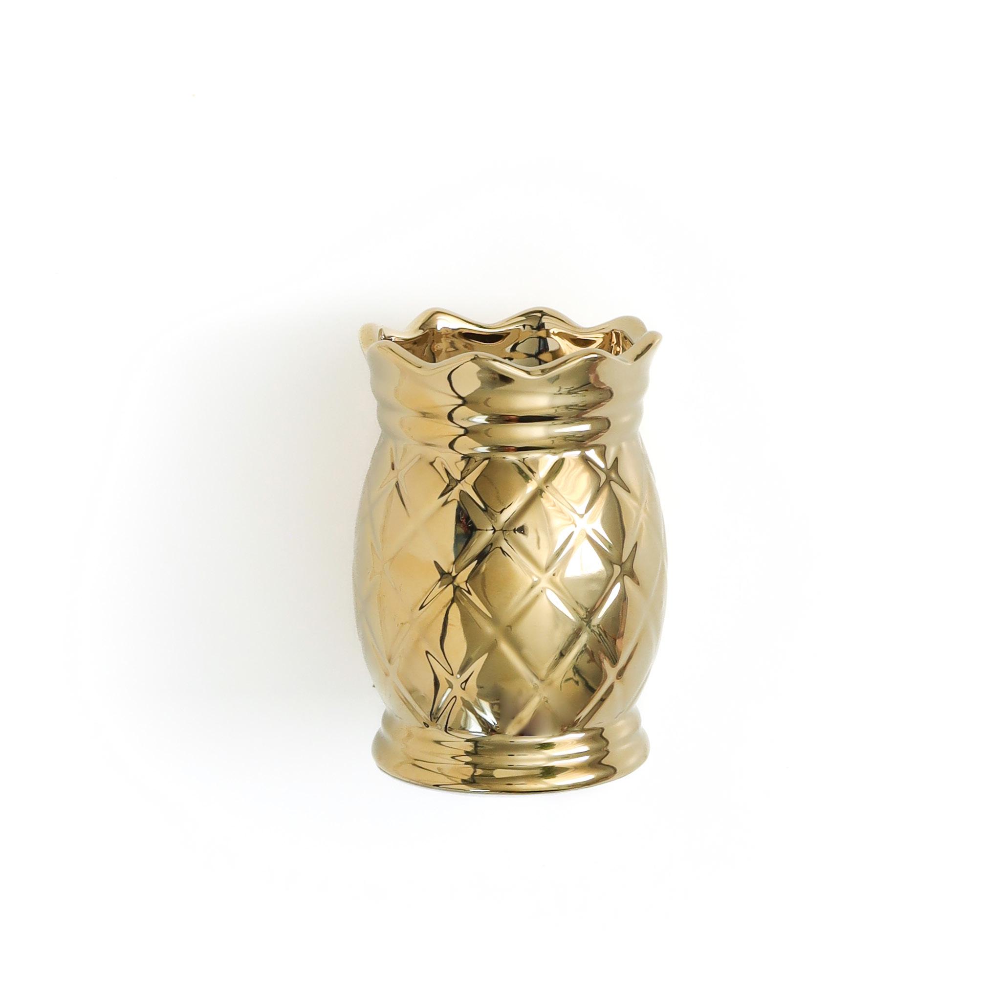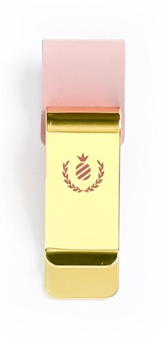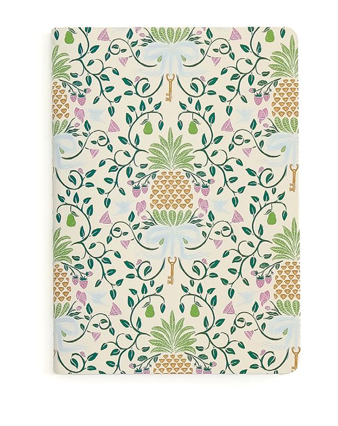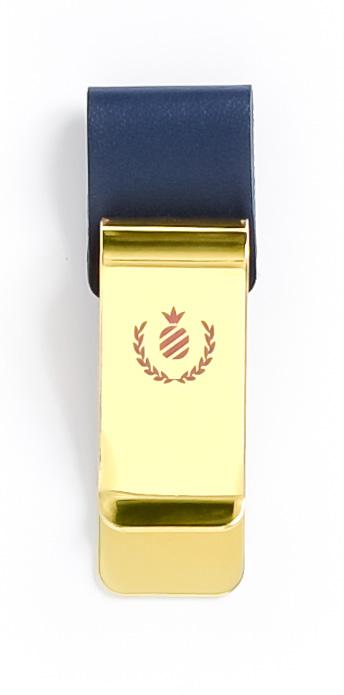 .9 x 2.75”, soft-touch leatherette, shiny gold with engraved pineapple