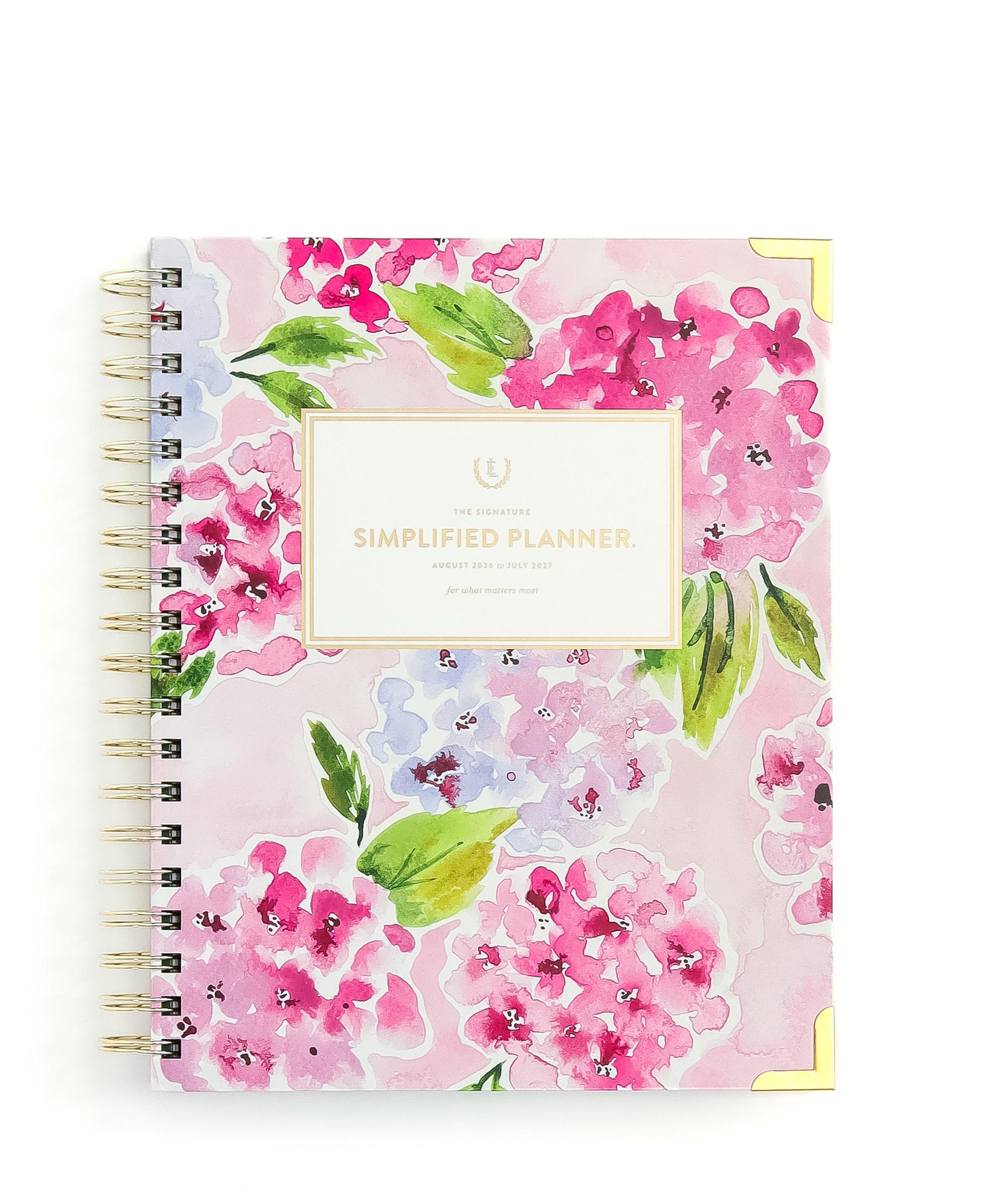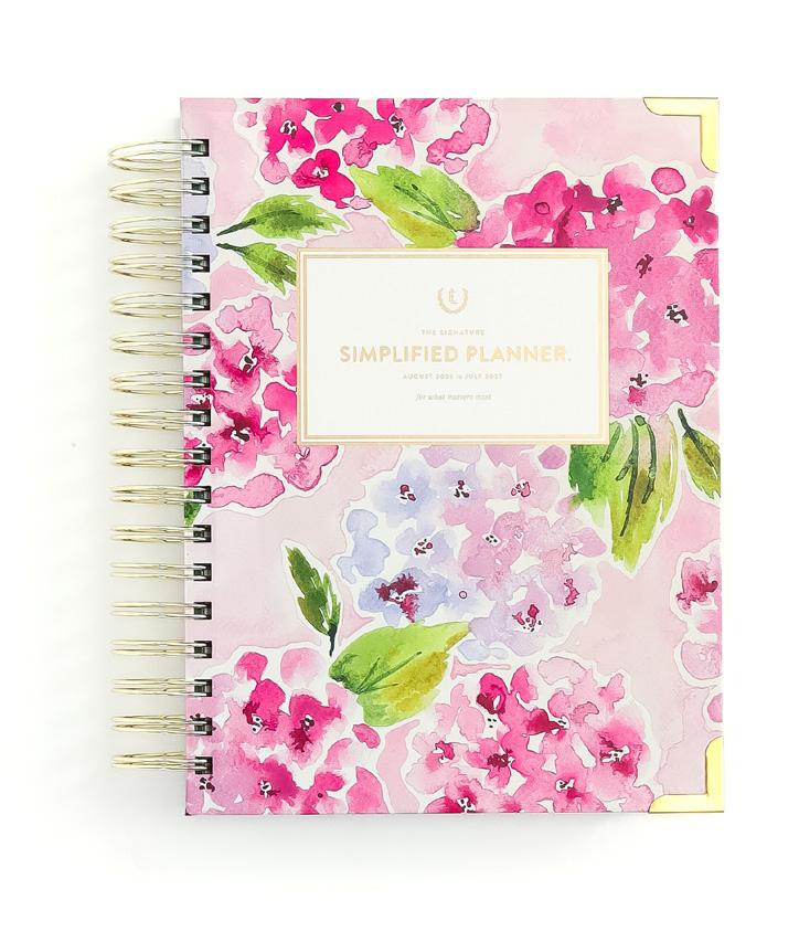 The Spiral Weekly Simplified Planner features gold spiral binding, a thick durable hardcover, and gold foil details. Inside this edition, you’ll find a double-sided pocket page, a page of stickers, colorful mylar tabs for each month, organizational tips, a yearly bucket list, yearly calendars, and a week-per-spread format. Includes a six-page mini Simplified Prep Work section, which features our signature 30-Day Simplicity Challenge. Spiral Weekly Simplified Planners span twelve months and measure 8 x 10”. There are two Spiral Weekly Simplified Planners: Academic (Aug-Jul) and Calendar (Jan-Dec), and each is available in four cover styles.