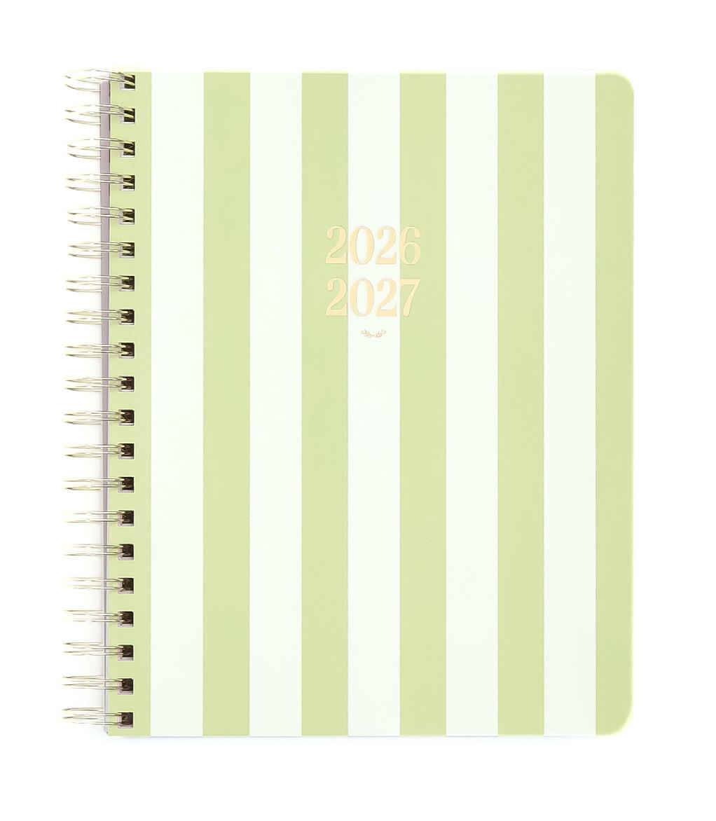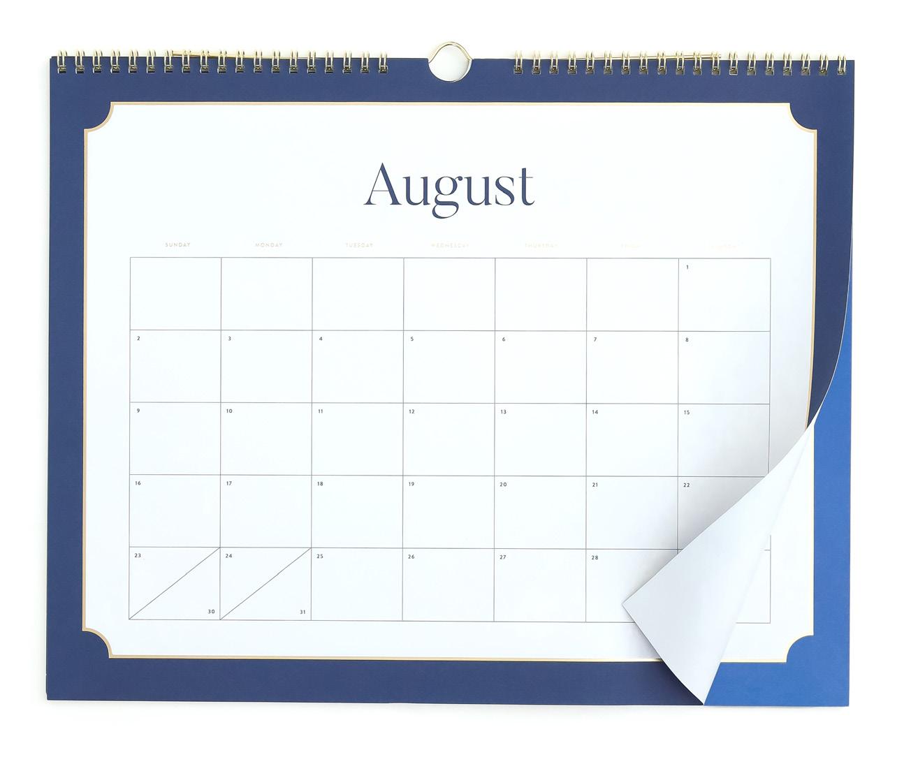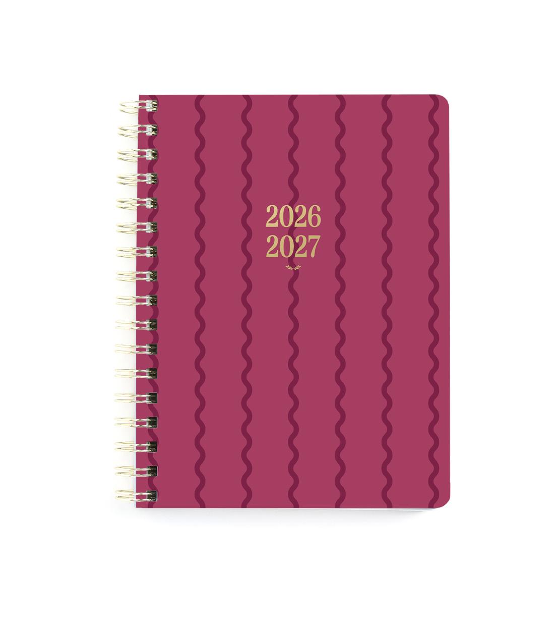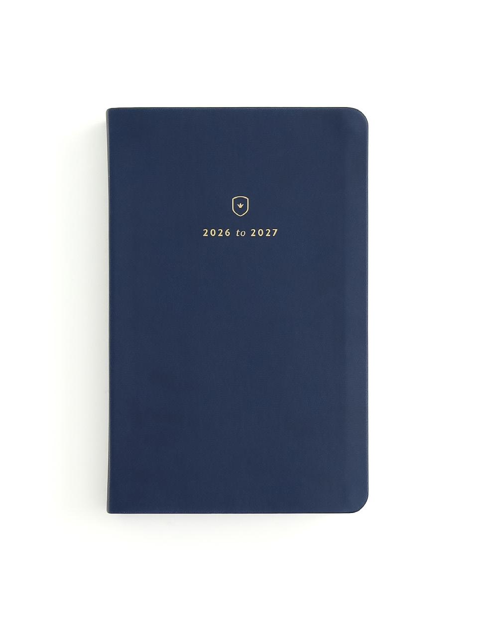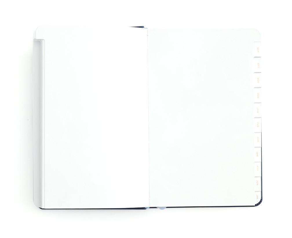 The monthly edition covers 12 months (with one two-page spread per month) and features a saddle-stitched binding, 13 notes pages in the back, and luxurious pure white paper. Measures 8 x 10” and is available in two date ranges: Aug-Jul or Jan-Dec. Packaged in a cello bag with a gold foil label.