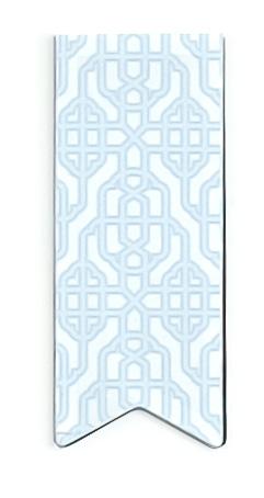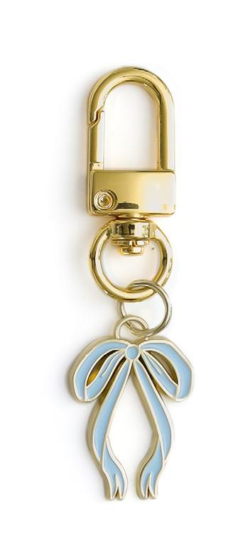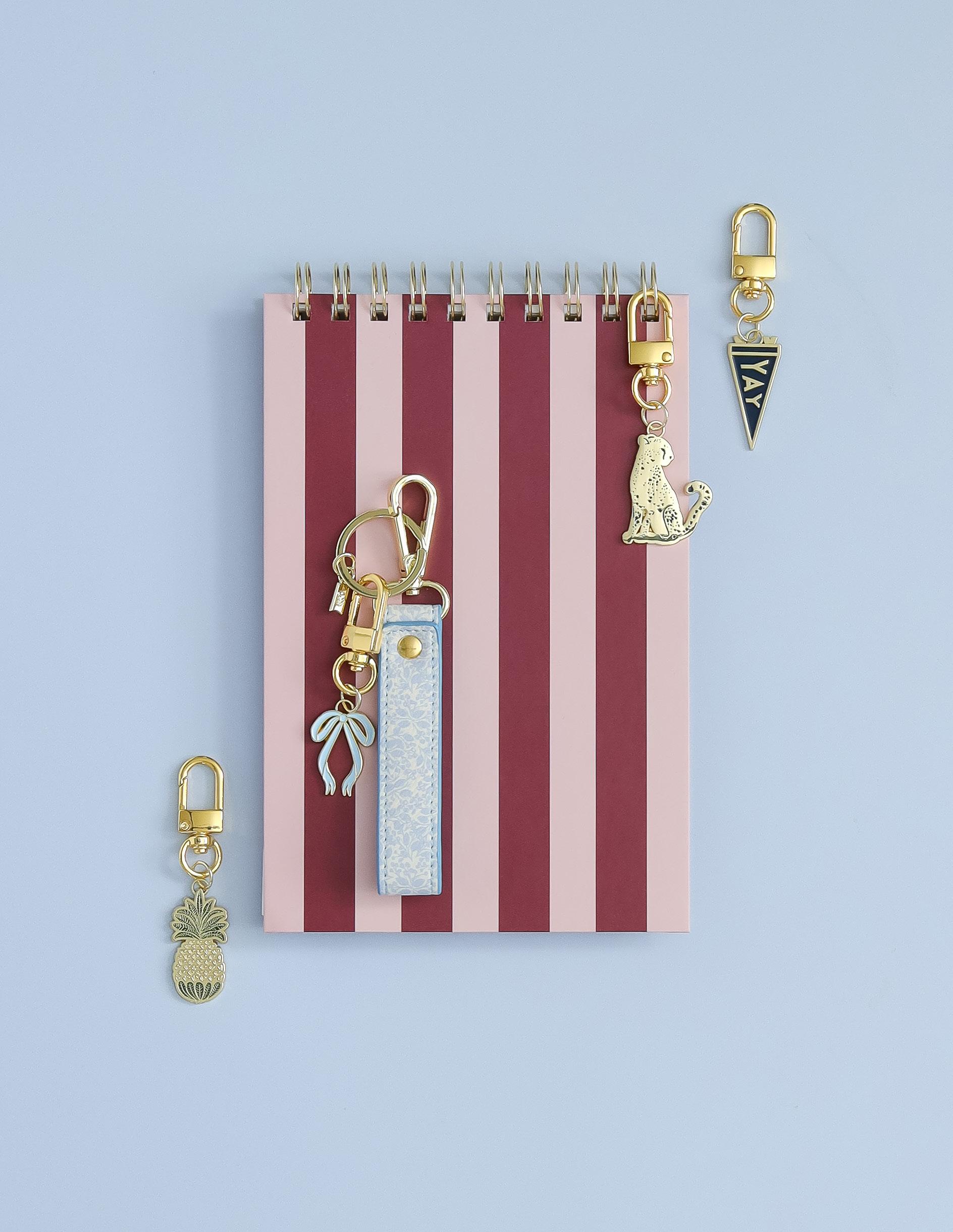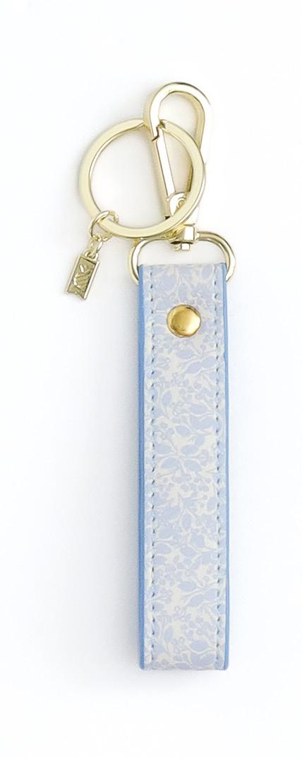 5.7 x .8” patterned leatherette key chains with gold hardware. Packaged in an ivory box with gold foil details.