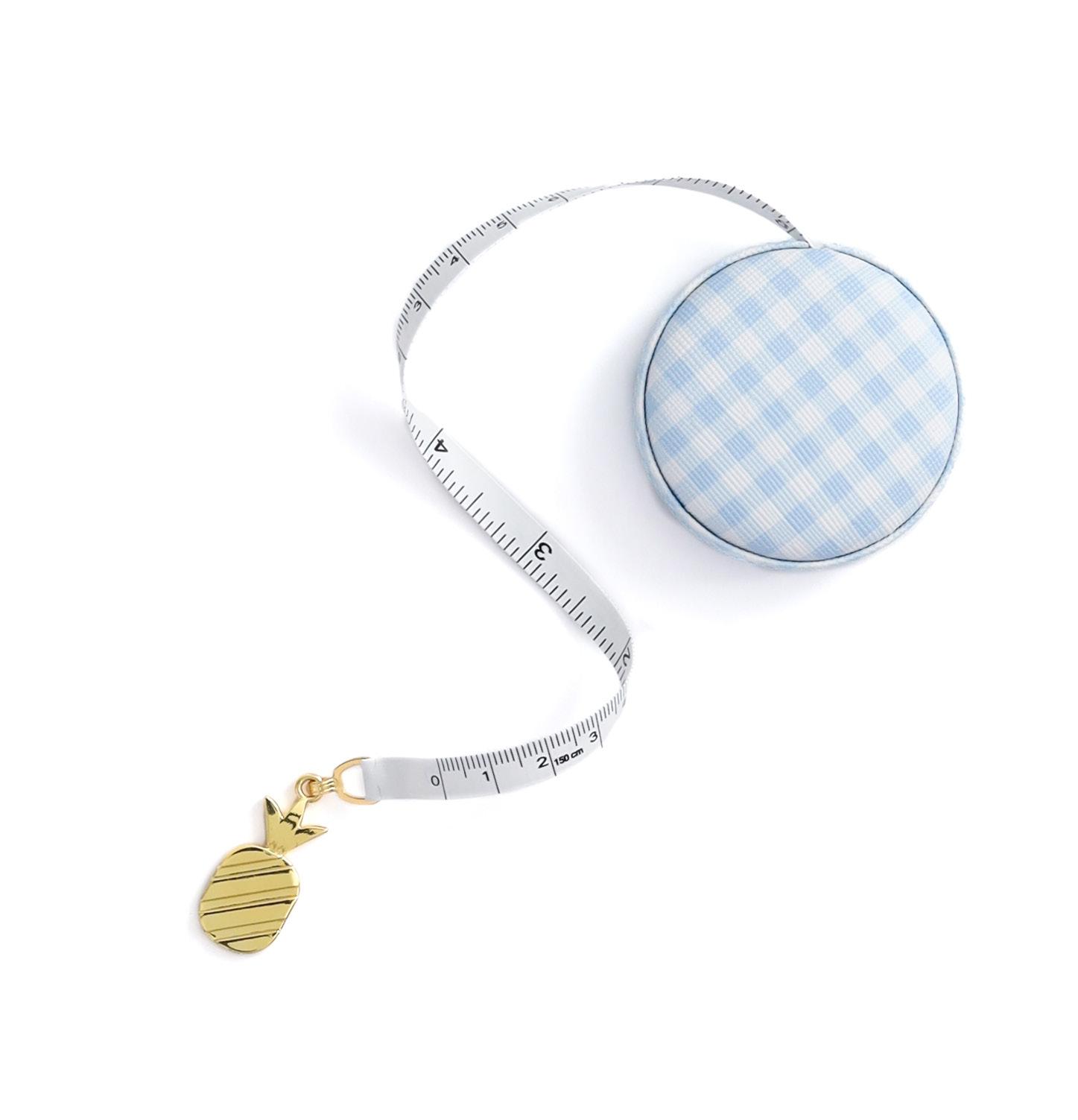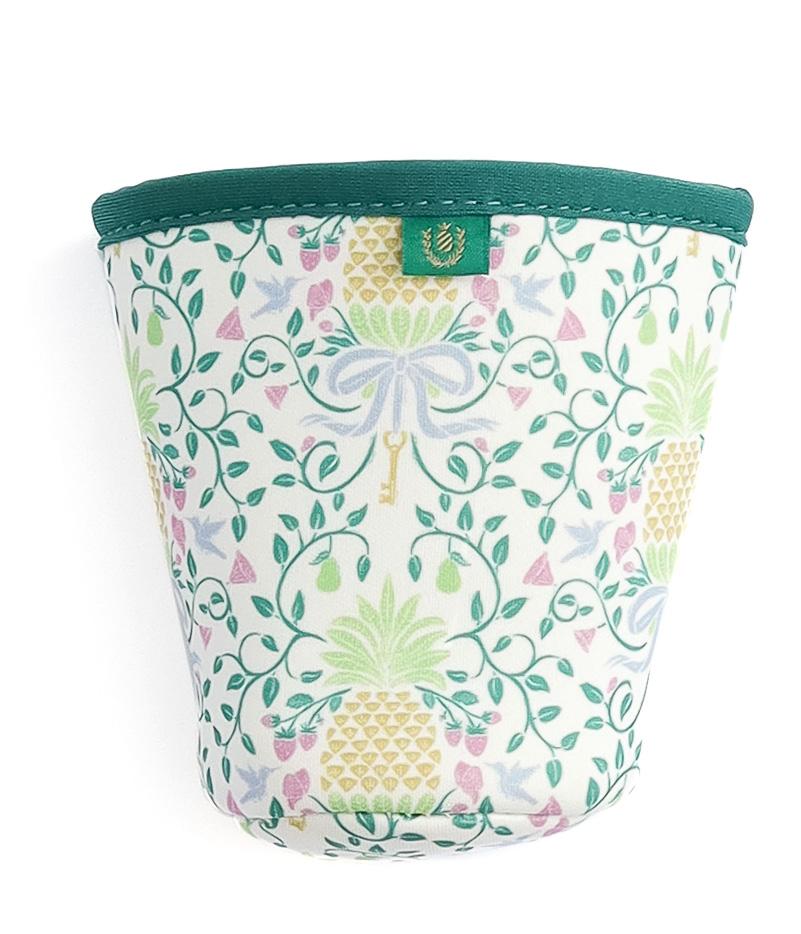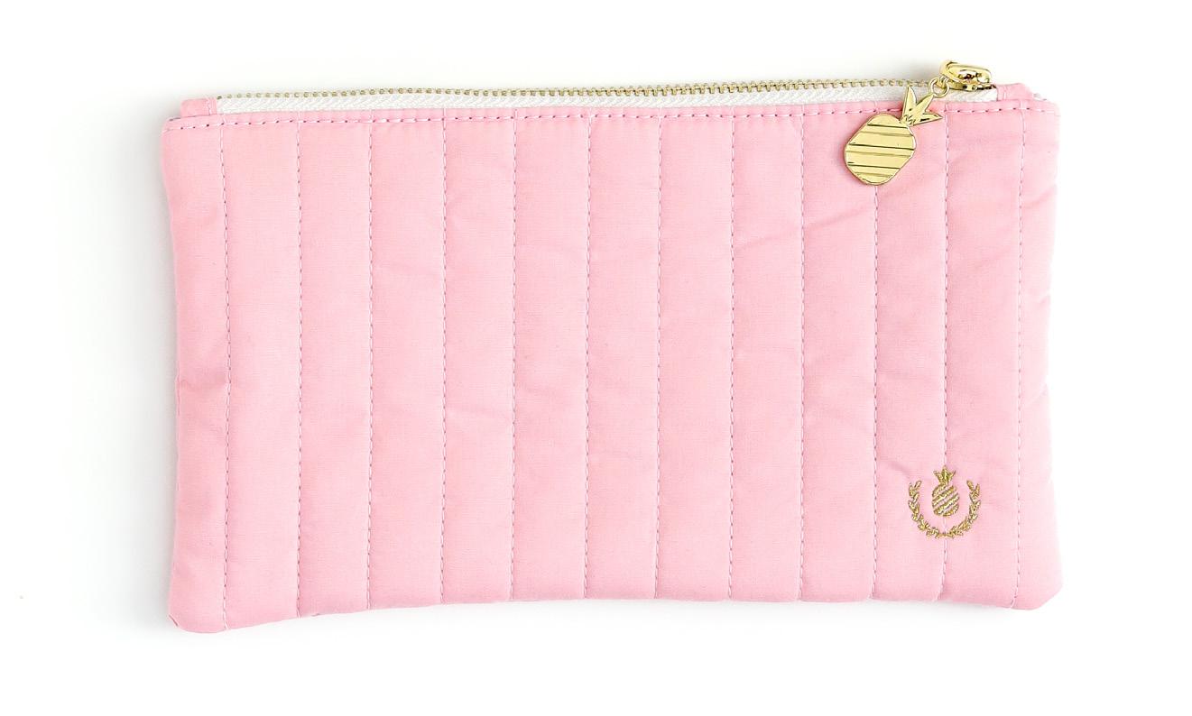5 x 9”, quilted fabric exterior with fabric liner, gold pineapple crest embroidery, gold zipper, and gold pineapple zipper pull