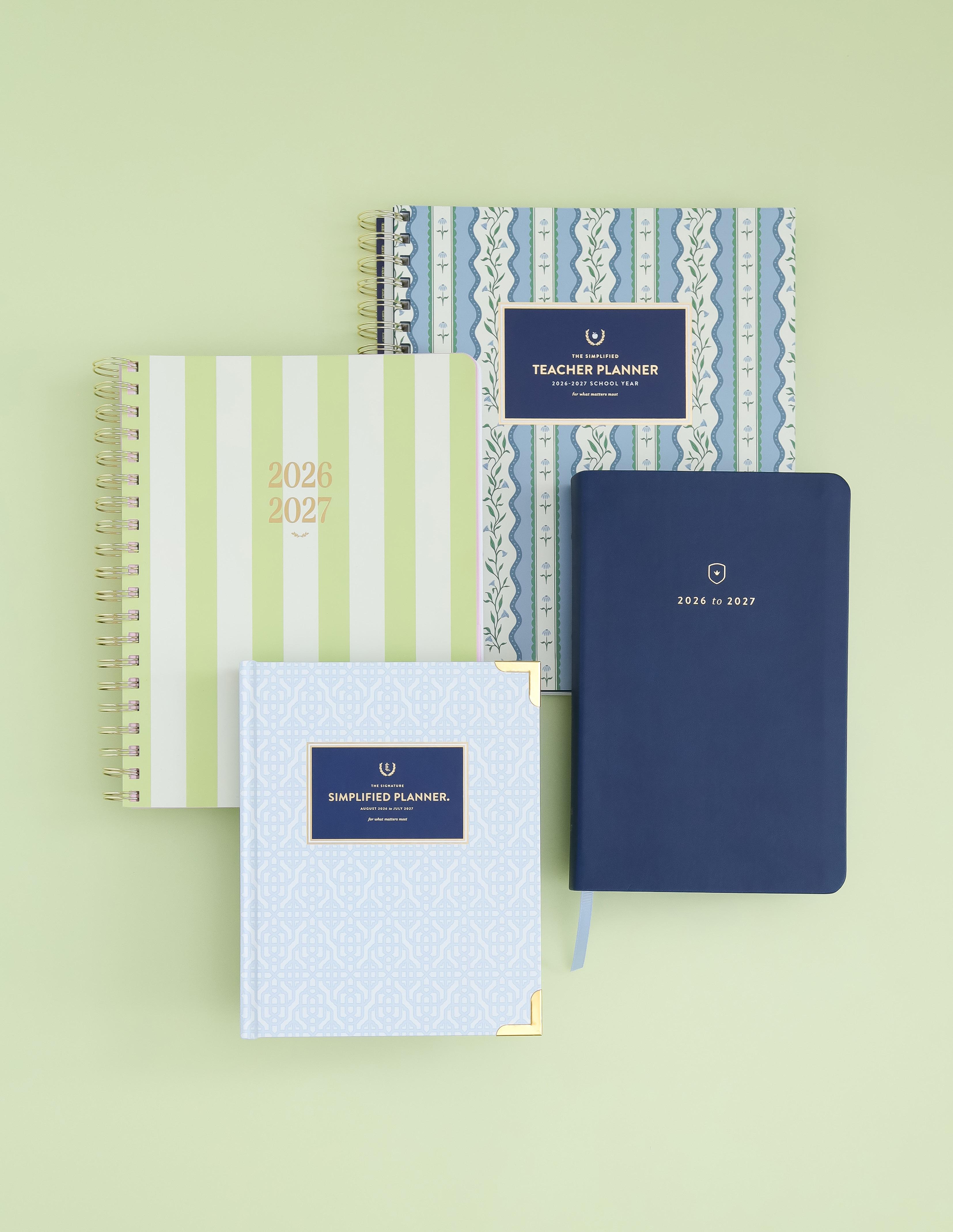 The Bookbound Weekly Simplified Planner features a bookbound lay-flat binding, a thick durable hardcover, and gold foil details. Inside this edition, you’ll find an inside pocket, a sheet of stickers, colorful mylar tabs for each month, organizational tips, a yearly bucket list, yearly calendars and holidays, and a week-per-spread format. Includes a six-page mini Simplified Prep Work section, which features our signature 30-Day Simplicity Challenge. Bookbound Weekly Simplified Planners span twelve months and measure 6.5 x 8”. There are two Bookbound Weekly Simplified Planners: Academic (Aug-Jul) and Calendar (Jan-Dec), and each is available in four cover styles.