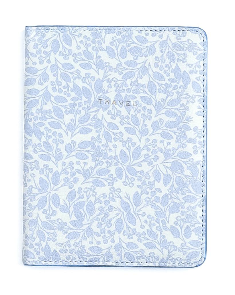 Leatherette passport holder measuring 5.5 x 4.25” (folded) featuring gold foil details and interior pockets. Packaged in a cello bag with a gold foil label.