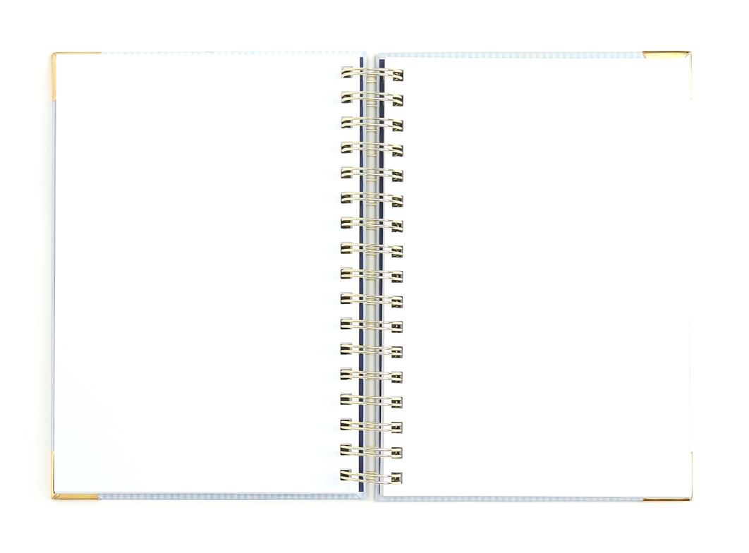 The Undated Daily Simplified Planner features gold spiral binding, a linen hard cover, and gold foil details. Inside this edition, you’ll find a double-sided pocket page, a full-color page of stickers, and a day-per-page format. Measures 7 x 9” and includes 183 undated pages, perfect for flexible planning without wasting unused dated pages.