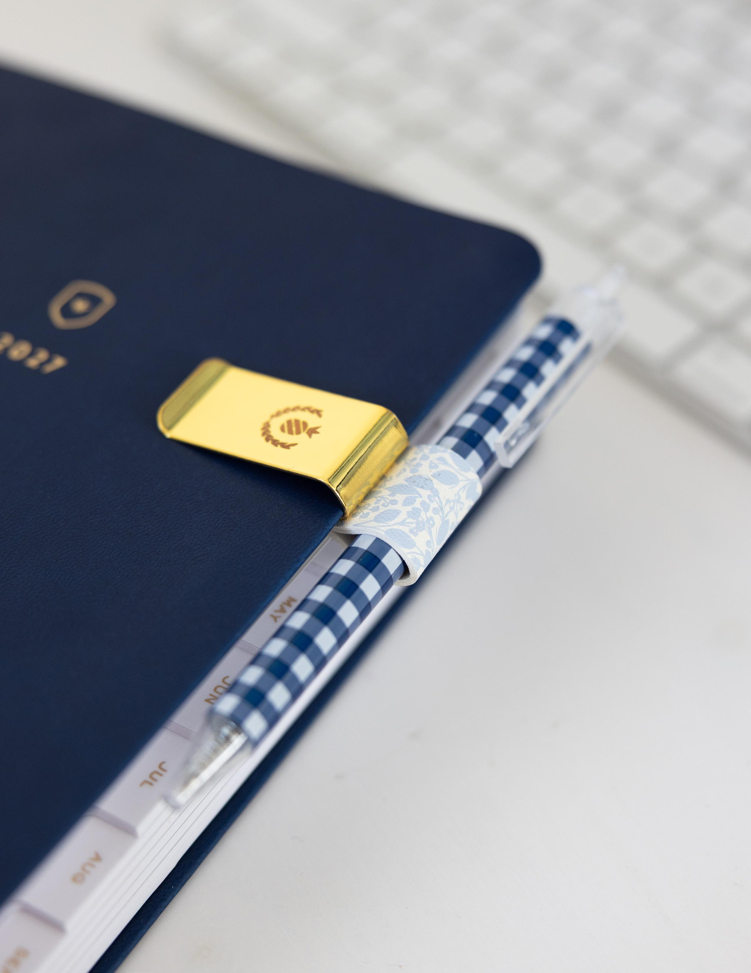 Our newest additions to this collection include a bigger leatherette pouch (sized for all of our planner editions), leatherette petite pen pouches, and new patterns of our bestselling planner accessories.