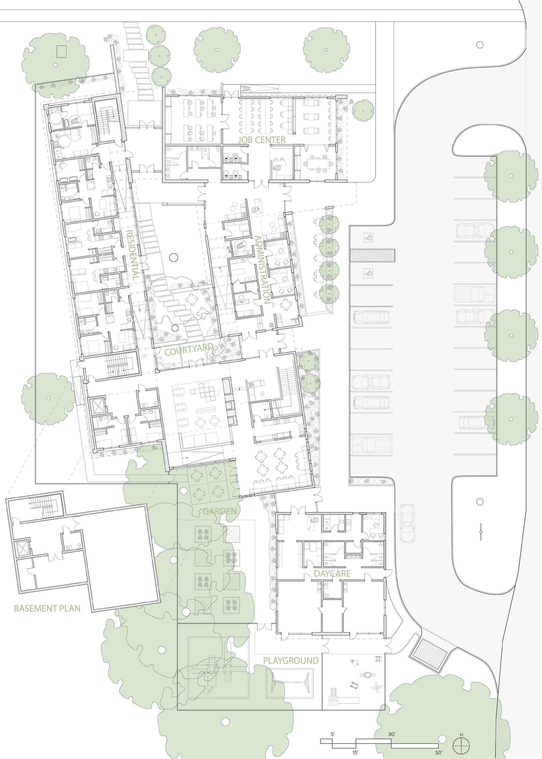 The 16,500 sq. ft. facility includes a Job Center, a Daycare, and separate wings for administration and residential purposes. Because the Daycare and the Job Center are intended for both residential and