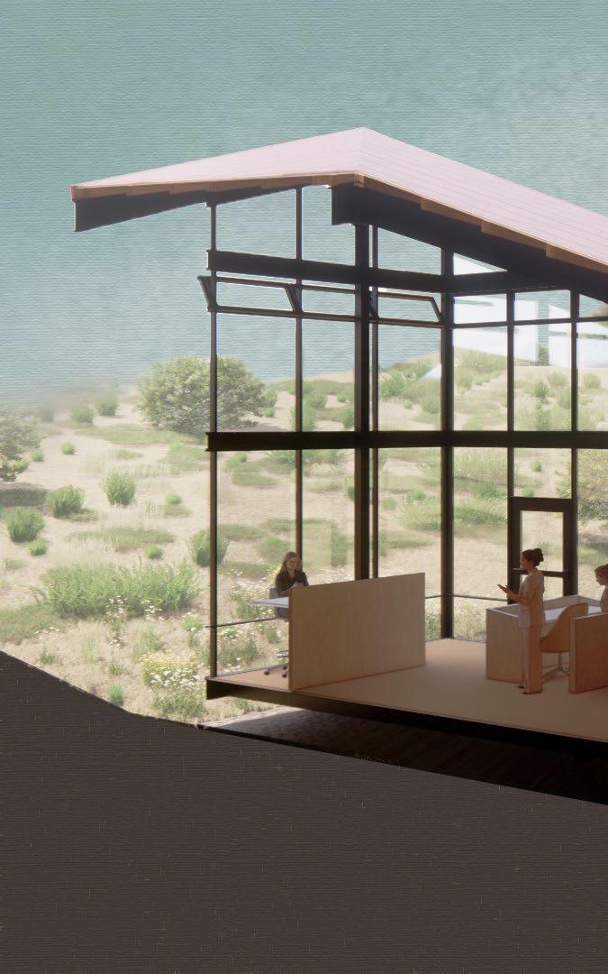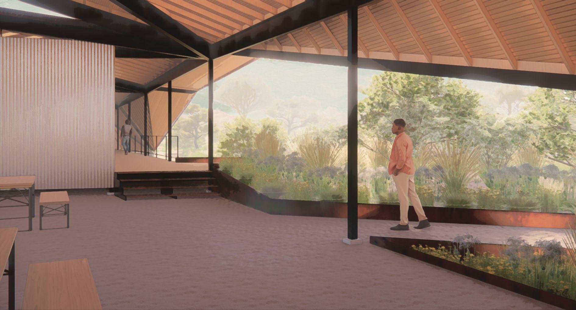 Analyzing prevailing wind patterns and sun shading is essential to create a comfortable internal and external environment. Consequently, the roof structure draws inspiration from the surrounding bluffs, while integrating passive cooling and sun shading techniques. These design elements are intended to enhance thermal comfort and energy efficiency, reflecting a sophisticated response to the climatic challenges of the region.