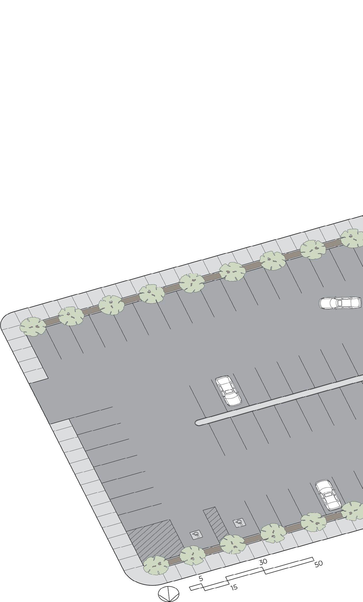 general public use, these programs are aligned regularly with the street. In contrast, the more private spaces employ a slightly rotated grid orientation to discourage public entry.