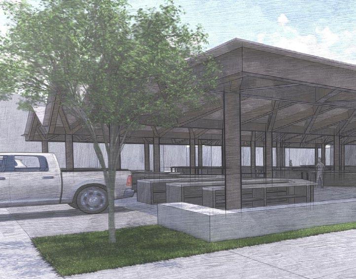 The Manhattan Farmers Market is designed to permanently house a market for selling local, home-grown, and homemade products. The project also includes a teaching kitchen and exterior seating area, which can be used for various outdoor events.