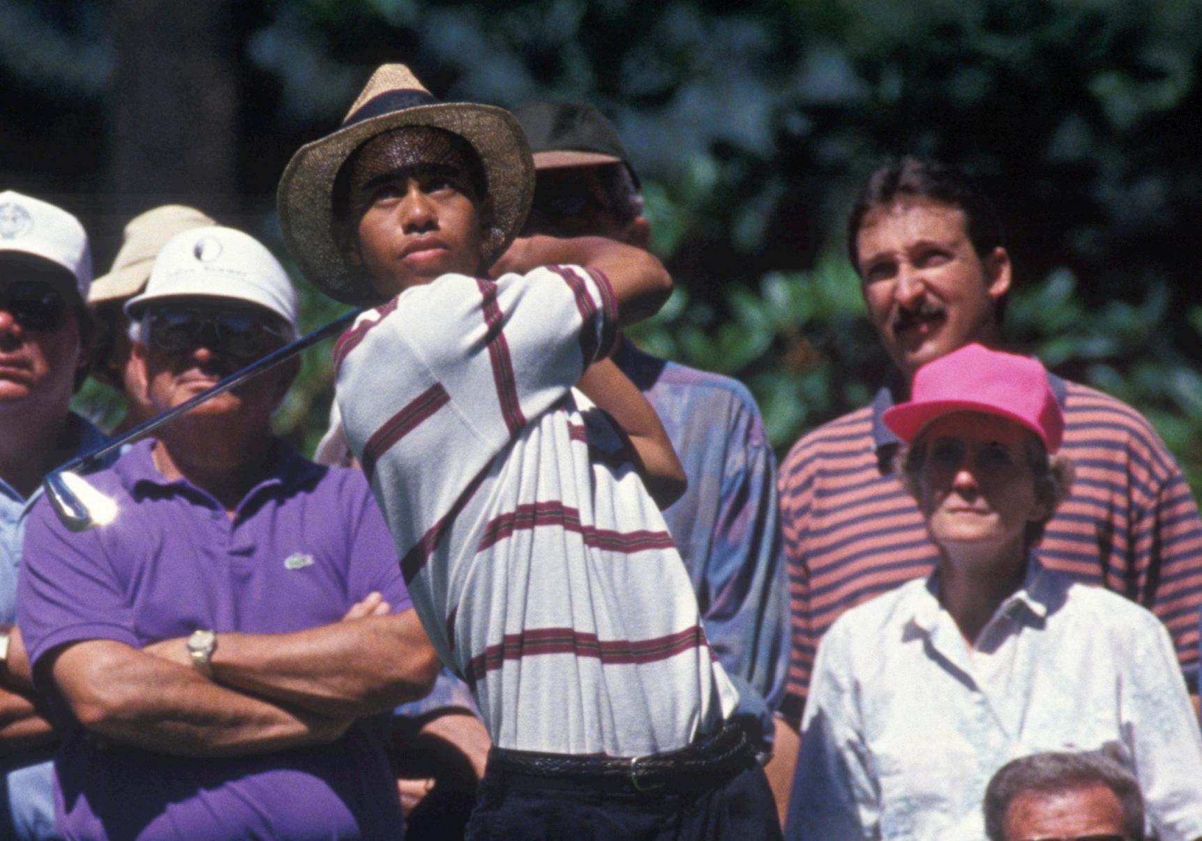 Tiger Woods hits a shot at the 1993 U.S. Junior Amateur at Waverley Country Club in Portland, Oregon, where he would go on to secure a record-setting third Championship victory.