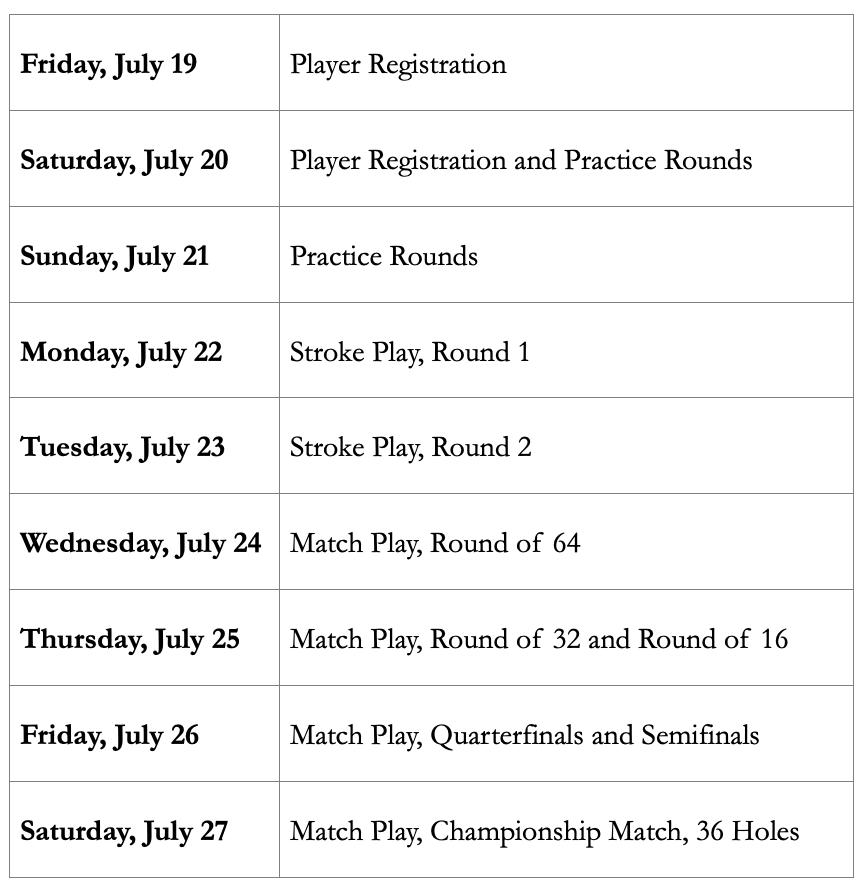 Player pairing, starting times, and live scoring will be listed on the Championship website and official USGA App. We encourage you to download to the app to follow the latest updates in real time.