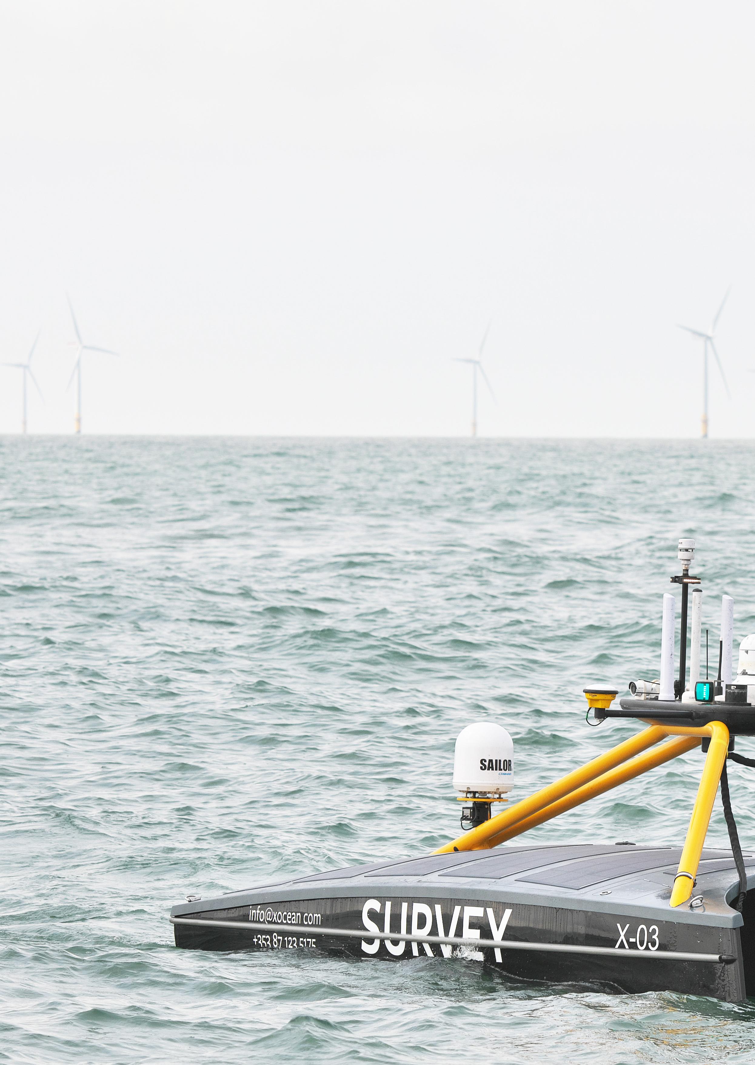 Uncrewed Surface Vessels (USVs) that use a hybrid power system and are relatively compact and lightweight when compared to traditional crewed vessels provide an ideal platform to collect environmental data around offshore infrastructure. For example, the XOCEAN XO-450 model USVs are only 4.5m long (approximate length of a car) and can get significantly closer to a turbine or platform (~10m) than a conventional ship. The size and weight of the USV mitigates any risk to the assets and generally improves safety with the project team working remotely from shore.