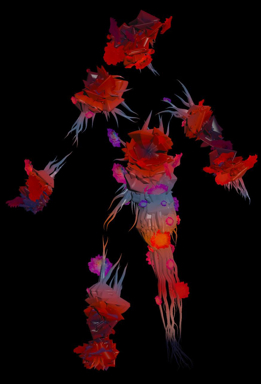 Opposite Top: Applying flower geometries and color ramps to my 3D scanned body.