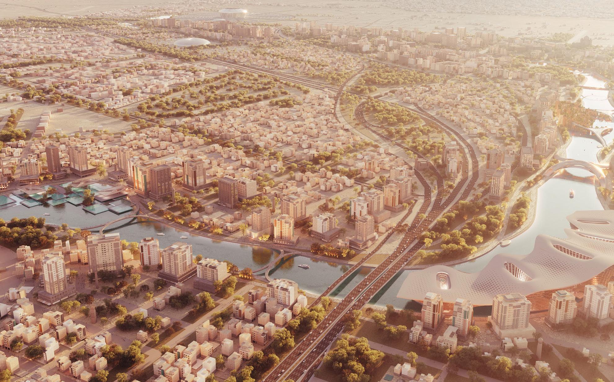 Neural networks are used to rescale and translate dense urban typologies into an optimized desert city. Three mutually beneficial systems are proposed: moss wetlands, a city, and a greenhouse city. Moss purifies the air and regulates local temperatures, the city prioritizes communal spaces for public flow, and the elevated greenhouses power the city below. The greenhouses convert heat into energy, house rich vegetation, and provide shade for the city below. Mashrabiya-inspired screens give naturally lit interiors, passive cooling, and protection from the sun. The thick concrete facade responds to the desert city’s diurnal swings with its high thermal mass. Tall and narrow corridors with self-shading buildings protect inhabitants from direct heat from the desert sun.
