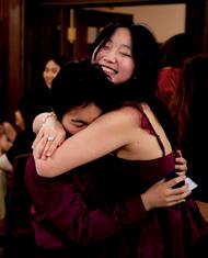 8. Isabella H. ’25 hugs Robyn Wu ’24 at Ring Dinner after receiving a class ring.