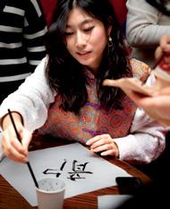 9. Olivia C. ’27 practices calligraphy at one of the many activities offered by the Asian Student Union during Lunar New Year celebrations on campus.